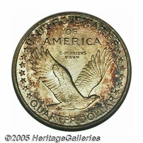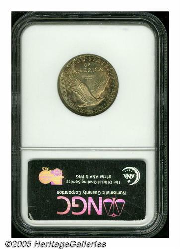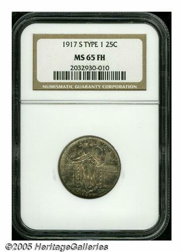 <B>1917-S<25C> Type One MS65 Full Head NGC.</B></I> Fully defined, including complete inner shield detail and full rivets. The deeply toned surfaces display shimmering, satin-like luster under the blue and russet-red colors. There are just a few trivial marks on the reverse and an interesting die crack is noted through the E of STATES to the last A of AMERICA..<BR><I>From The Clifford Columbus Collection.</B></I>