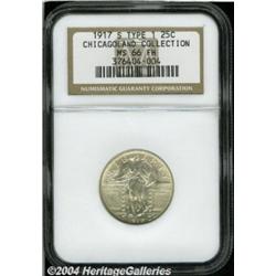 <B>1917-S<25C> Type One MS66 Full Head NGC.</B></I> Ex: The Chicagoland Collection. An intricately detailed, untoned example that has vibrant matte-like luster and only the most insignificant surface marks. <BR><BR><B>Important notice:</B> Heritage usually auctions material at the rate of 200-250 lots per hour. On some occasions eBay Live bid software or the Internet may not be able to keep up with the pace of the auction. We recommend placing a realistic absentee bid now as insurance to avoid disappointment. Occasionally the auctioneer may eliminate or reject an eBay Live bid, and the auctioneer may also reopen a lot after the close of the eBay live bidding (usually because we missed an audience bid), and may reject your bid even if it shows you as the winning bidder. By bidding via eBay Live, you agree that Heritage may award the lot to another bidder at its sole discretion under the circumstances described above or any other reasonable circumstances. Since eBay bids are not shown to us until we open the lot on the floor, we treat those bids just like floor bids. In most cases the floor responds before the eBay bid is presented to us, due to Internet lag time, so for consistency we have made it a policy that floor bids are always considered first over tie eBay live bids. Also please note that all Heritage lots purchased through eBay Live carry a 20% Buyer's Premium. Please make sure you read the Terms and Conditions before you bid. </span></font></tr></table></td></tr></table>