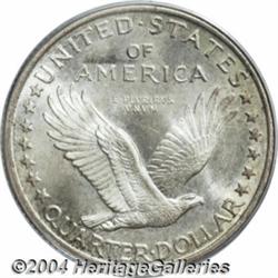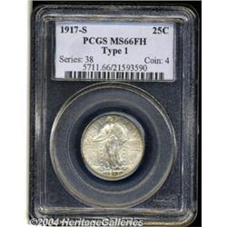 <B>1917-S<25C> Type One MS66 Full Head PCGS.</B></I> Subtle olive and russet colors visit the peripheries, although pearl-gray patina is otherwise pervasive. An exquisitely struck and highly lustrous premium Gem with outstanding preservation. While the high mintage Philadelphia Mint counterpart ensures that type collectors will always be able to obtain an attractive Mint State example, less than 2 million pieces were struck in San Francisco, and Type One Gems from the west coast mint are scarce. Population: 43 in 66, 8 finer (3/04). <BR><BR><B>Important notice:</B> Heritage usually auctions material at the rate of 200-250 lots per hour. On some occasions eBay Live bid software or the Internet may not be able to keep up with the pace of the auction. We recommend placing a realistic absentee bid now as insurance to avoid disappointment. Occasionally the auctioneer may eliminate or reject an eBay Live bid, and the auctioneer may also reopen a lot after the close of the eBay live bidding (usually because we missed an audience bid), and may reject your bid even if it shows you as the winning bidder. By bidding via eBay Live, you agree that Heritage may award the lot to another bidder at its sole discretion under the circumstances described above or any other reasonable circumstances. Since eBay bids are not shown to us until we open the lot on the floor, we treat those bids just like floor bids. In most cases the floor responds before the eBay bid is presented to us, due to Internet lag time, so for consistency we have made it a policy that floor bids are always considered first over tie eBay live bids. Also please note that all Heritage lots purchased through eBay Live carry a 20% Buyer's Premium. Please make sure you read the Terms and Conditions before you bid. </span></font></tr></table></td></tr></table>