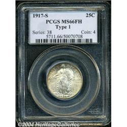 <B>1917-S<25C> Type One MS66 Full Head PCGS.</B></I> The devices on each side are fully brought up in all areas and complement the exceptional mint luster. Lightly toned on the obverse, the reverse shows mottled russet patination with significant amounts of original mint brilliance still in evidence as well. <BR><BR><B>Important notice:</B> Heritage usually auctions material at the rate of 200-250 lots per hour. On some occasions eBay Live bid software or the Internet may not be able to keep up with the pace of the auction. We recommend placing a realistic absentee bid now as insurance to avoid disappointment. Occasionally the auctioneer may eliminate or reject an eBay Live bid, and the auctioneer may also reopen a lot after the close of the eBay live bidding (usually because we missed an audience bid), and may reject your bid even if it shows you as the winning bidder. By bidding via eBay Live, you agree that Heritage may award the lot to another bidder at its sole discretion under the circumstances described above or any other reasonable circumstances. Since eBay bids are not shown to us until we open the lot on the floor, we treat those bids just like floor bids. In most cases the floor responds before the eBay bid is presented to us, due to Internet lag time, so for consistency we have made it a policy that floor bids are always considered first over tie eBay live bids. Also please note that all Heritage lots purchased through eBay Live carry a 20% Buyer's Premium. Please make sure you read the Terms and Conditions before you bid. </span></font></tr></table></td></tr></table>