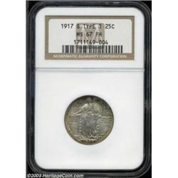 <table><tr><td><TABLE cellSpacing=0 cellPadding=0 width="100%" bgColor=#000000 border=0><TBODY> <TR><TD width="100%"><TABLE cellSpacing=1 cellPadding=3 width="100%" border=0><TBODY><TR><TD width="100%" bgColor=#79735c><FONT face=arial color=#ffffff size=3><B>Description</B> </FONT></TD></TR><TR><TD width="100%" bgColor=#ffffff><FONT face=arial size=2><B>1917-S 25C Type One MS67 Full Head NGC.</B></I> Scarcest of the Type One quarters, this piece displays absolute full detailing in all areas, even the rivets in the shield are complete. Bright and lustrous, the surfaces are pinkish-gray in hue with iridescent toning around the margins. A splendid coin and unimprovable in technical grade--we also doubt this coin could be excelled in terms of overall visual appeal. Population: 11 in 67, 0 finer (7/03). </FONT></TD></TR></TBODY></TABLE></TD></TR></TBODY></TABLE><BR><A name=PricesRealized></A><TABLE cellSpacing=0 cellPadding=0 width="100%" bgColor=#000000 border=0><TBODY><TR><TD width="100%"><TABLE cellSpacing=1 cellPadding=3 width="100%" border=0><TBODY><TR><TD width="100%" bgColor=#79735c><A name=PR><FONT face=arial color=#ffffff size=3><B>Previous Prices from Heritage Auctions</B> </FONT></A></TD></TR><TR><TD bgColor=#f6f6ed><TABLE cellSpacing=0 cellPadding=0 width="100%" border=1><TBODY><TR><TD align=middle width="33%"><B>Date</B></TD><TD align=middle width="33%"><B>Service</B></TD><TD align=middle width="33%"><B>Price</B></TD></TR><TR bgColor=whitesmoke><TD width="33%"><B>07/29/2003</B></TD><TD width="33%">NGC</TD><TD width="33%">$6,900.00</TD></TR><TR bgColor=whitesmoke><TD width="33%"><B>01/11/2003</B></TD><TD width="33%">NGC</TD><TD width="33%">$7,187.50</TD></TR><TR bgColor=whitesmoke><TD width="33%"><B>01/11/2003</B></TD><TD width="33%">PCGS</TD><TD width="33%">$8,625.00</TD></TR><TR bgColor=whitesmoke><TD width="33%"><B>07/30/2002</B></TD><TD width="33%">PCGS</TD><TD width="33%">$10,062.50</TD></TR><TR bgColor=whitesmoke><TD width="33%"><B>02/11/2000</B></TD><TD width="33%">PCGS</TD><TD width="33%">$7,245.00</TD></TR><TR bgColor=whitesmoke><TD width="33%"><B>02/01/2001</B></TD><TD width="33%">PCGS</TD><TD width="33%">$7,762.00</TD></TR><TR bgColor=whitesmoke><TD width="33%"><B>03/01/2000</B></TD><TD width="33%">PCGS</TD><TD width="33%">$7,015.00</TD></TR></TBODY></TABLE></TD></TR><TR><TD bgColor=#ffffff><FONT face=arial size=1 ?>PLEASE NOTE: All prices realized reflect the final hammer price PLUS the buyer's premium in auctions that charge a buyer's premium. Each item has a notation at the top of the listing indicating whether that lot included a buyer's premium. Example: A item that sells with a final hammer price of $100 and a 20% buyer's premium will display with a price realized of $120. All information listed is intended to be as accurate as possible, but errors are possible. Please use this guide carefully and inform us of any inaccuracies. </FONT></TD></TR></TBODY></TABLE></TD></TR></TBODY></TABLE><BR><TABLE cellSpacing=0 cellPadding=0 width="100%" bgColor=#000000 border=0><TBODY><TR><TD width="100%"><TABLE cellSpacing=1 cellPadding=3 width="100%" border=0><TBODY><TR><TD width="100%" bgColor=#79735c colSpan=6><FONT face=arial color=#ffffff size=3><B>Price Guide*</B> </FONT></TD></TR><TR bgColor=#f6f6ed><TD align=middle><B>Grade</B> </TD><TD align=middle><B>Coin World<BR>(Trends)</B> </TD><TD align=middle><B>Numismedia<BR>Retail</B> </TD><TD align=middle><B>Numismedia<BR>Wholesale</B> </TD><TD align=middle><B>Coin<BR>Universe</B> </TD><TD align=middle><B>Heritage<BR>Value Index</B> </TD></TR><TR bgColor=#ffffff><TD align=middle>66</TD><TD align=right>---</TD><TD align=right>---</TD><TD align=right>$2,775.00</TD><TD align=right>$4,250.00</TD><TD align=right>$2,962.50</TD></TR><TR style="FONT-WEIGHT: bold" bgColor=#cccfdd><TD align=middle>67</TD><TD align=right>---</TD><TD align=right>---</TD><TD align=right>$6,850.00</TD><TD align=right>---</TD><TD align=right>---</TD></TR><TR bgColor=#ffffff><TD align=middle>68</TD><TD align=right>---</TD><TD align=right>---</TD><TD align=right>---</TD><TD align=right>---</TD><TD align=right>---</TD></TR><TR bgColor=#ffffff><TD colSpan=6><FONT size=1>*All information listed is intended to be as accurate as possible, but errors are possible. No item may be returned or refused based on this information which is provided as a service to our customers. You should contact each pricing source directly to determine the accuracy of this information. </FONT></TD></TR></TBODY></TABLE></TD></TR></TBODY></TABLE><BR><TABLE cellSpacing=0 cellPadding=0 width="100%" bgColor=#000000 border=0><TBODY><TR><TD width="100%"><TABLE cellSpacing=1 cellPadding=3 width="100%" border=0><TBODY><TR><TD width="100%" bgColor=#79735c><FONT face=arial color=#ffffff size=3><B>Population Guide</B> </FONT></TD></TR><TR bgColor=#ffffff><TD align=middle><!-- Begin Output of Population Grid--><TABLE cellSpacing=0 cellPadding=0 width="100%" border=0><TBODY><TR><TD vAlign=center><TABLE cellSpacing=0 width="100%" border=1 cellsadding="3"><TBODY><TR><TD vAlign=center><TABLE cellSpacing=0 cellPadding=3 width="100%" border=1><TBODY><TR><TD vAlign=center align=middle bgColor=#f0f1e8 colSpan=2 <CENTER><FONT face=Arial size=2><B>PCGS Pop </B></FONT><CENTER></CENTER></TD><TD vAlign=center align=middle bgColor=#f0f1e8 colSpan=2><CENTER><FONT face=Arial size=2><B>NGC Pop</B></CENTER></FONT></TD></TR><TR><TD vAlign=center><FONT face=Arial size=2>(67)</FONT> </TD><TD vAlign=center align=right><FONT face=Arial size=2>7</FONT> </TD><TD vAlign=center><FONT face=Arial size=2>(67)</FONT> </TD><TD vAlign=center align=right><FONT face=Arial size=2>11</FONT> </TD></TR><TR><TD vAlign=center><FONT face=Arial size=2>(>67)</FONT> </TD><TD vAlign=center align=right><FONT face=Arial size=2>0</FONT> </TD><TD vAlign=center><FONT face=Arial size=2>(>67)</FONT> </TD><TD vAlign=center align=right><FONT face=Arial size=2>0</FONT> </TD></TR></TBODY></TABLE></TD></TR></TBODY></TABLE></TD></TR></TBODY></TABLE><!-- End 