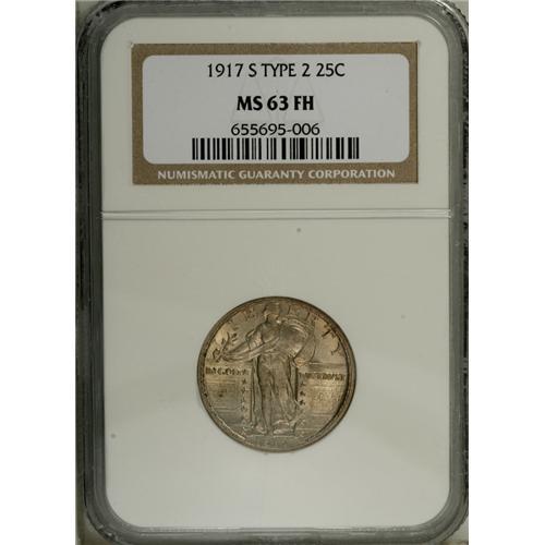 1917-S 25C Type Two MS63 Full Head NGC. Softly lustrou