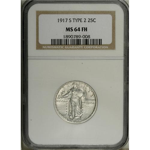 <B>1917-S 25C Type Two MS64 Full Head NGC.</B></I> This satiny near-Gem has bright silver luster with sharp design elements. The surfaces are fully brilliant with no trace of toning.<BR><BR><b>Shipping:</b> Coin/Currency (<a target="_blank" href="http://www.heritageauctions.com/common/shipping.php">view shipping information</a>)