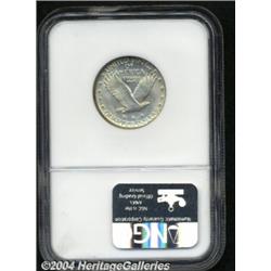 <B>1917-S<25C> Type Two MS66 NGC.</B></I> Coruscant luster radiates from the surface of this Premium Gem as soft golden color encompasses the obverse and reverse surfaces. Surfaces preservation is typical for the grade with several light scattered abrasions in well hidden areas. Seemingly an underappreciated issue with only 17 graded by NGC and none higher. <BR><BR><B>Important notice:</B> Heritage usually auctions material at the rate of 200-250 lots per hour. On some occasions eBay Live bid software or the Internet may not be able to keep up with the pace of the auction. We recommend placing a realistic absentee bid now as insurance to avoid disappointment. Occasionally the auctioneer may eliminate or reject an eBay Live bid, and the auctioneer may also reopen a lot after the close of the eBay live bidding (usually because we missed an audience bid), and may reject your bid even if it shows you as the winning bidder. By bidding via eBay Live, you agree that Heritage may award the lot to another bidder at its sole discretion under the circumstances described above or any other reasonable circumstances. Since eBay bids are not shown to us until we open the lot on the floor, we treat those bids just like floor bids. In most cases the floor responds before the eBay bid is presented to us, due to Internet lag time, so for consistency we have made it a policy that floor bids are always considered first over tie eBay live bids. Also please note that all Heritage lots purchased through eBay Live carry a 20% Buyer's Premium. Please make sure you read the Terms and Conditions before you bid. </span></font></tr></table></td></tr></table>