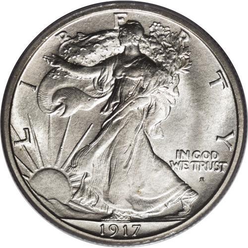 <B>1917-S 50C Obverse MS64 PCGS.</B></I> A rare and in-demand issue, the 1917-S Obverse is considered one of the first of several difficult S-mint Walking Liberty half dollar emissions, if not in the same league as coins such as the 1919-S and 1921-S. This coin is coated with a liberal covering of thick mint frost and is essentially untoned, with silver-white, lustrous surfaces. The strike is pleasing, with a split thumb and good detail on Liberty's head. A small, curving strike-through is noted in the left obverse field. Population: 81 in 64, 41 finer (1/07).<BR><BR><b>Shipping:</b> Coins & Currency (<a target="_blank" href="http://www.heritageauctions.com/common/shipping.php">view shipping information</a>)