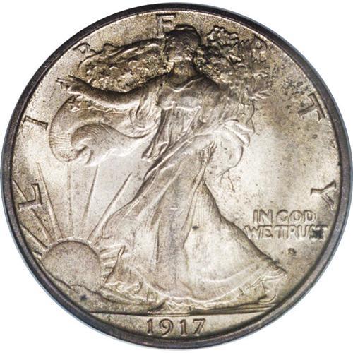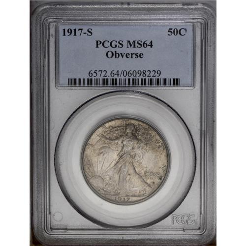 <B>1917-S<50C> Obverse MS64 PCGS.</B></I> One of several Choice Mint State representatives being offered, unusual even by Heritage signature sale standards. The bulk of S-mint half production in 1917 was directed toward the mid-year reverse mintmark adaptation and today the former is more difficult in all grades. The strike on this wonderfully original example is boldly executed and both sides are draped in speckled golden-gray patina. <BR><BR><B>Important notice:</B> Heritage usually auctions material at the rate of 200-250 lots per hour. On some occasions eBay Live bid software or the Internet may not be able to keep up with the pace of the auction. We recommend placing a realistic absentee bid now as insurance to avoid disappointment. Occasionally the auctioneer may eliminate or reject an eBay Live bid, and the auctioneer may also reopen a lot after the close of the eBay live bidding (usually because we missed an audience bid), and may reject your bid even if it shows you as the winning bidder. By bidding via eBay Live, you agree that Heritage may award the lot to another bidder at its sole discretion under the circumstances described above or any other reasonable circumstances. Since eBay bids are not shown to us until we open the lot on the floor, we treat those bids just like floor bids. In most cases the floor responds before the eBay bid is presented to us, due to Internet lag time, so for consistency we have made it a policy that floor bids are always considered first over tie eBay live bids. Also please note that all Heritage lots purchased through eBay Live carry a 20% Buyer's Premium. Please make sure you read the Terms and Conditions before you bid. This lot is being auctioned in conjunction with a live floor auction by Heritage Galleries & Auctioneers. All final auction and invoice information will be supplied by Heritage Galleries & Auctioneers, and all other information should be considered preliminary. Lot:2913 <BR><BR><B>Winning Notification and Billing:</B> After the FINAL session in this auction is complete, Heritage will send e-mail and snail mail invoices. This process normally takes several days. All final auction and invoice information will be supplied by Heritage Galleries & Auctioneers, and all other information should be considered preliminary. <BR><BR>This auction will be conducted on a live auction floor and over the Internet through eBay Live. If you choose to place an absentee bid, please take a moment to <font color='#0000ff'><u><a href='http://pages.ebay.com/liveauctions/help/before/laabsentee.html'>learn how eBay Live absentee bidding works</a></u></font><font color='#000000'>