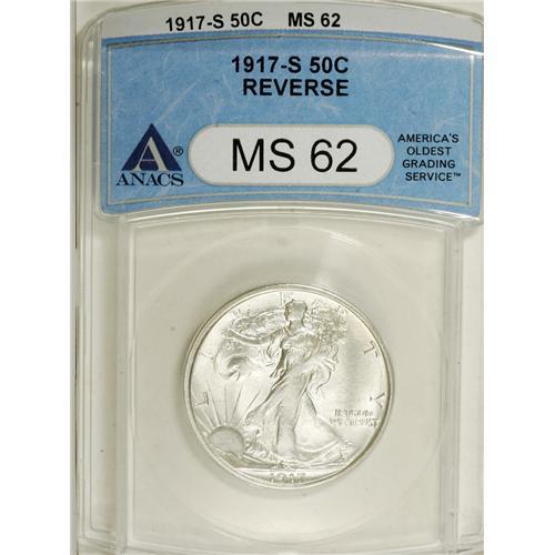 1917-S 50C Reverse MS62 ANACS. NGC Census: (224/46