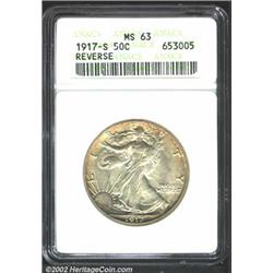 1917-S 50C Reverse MS63 ANACS. Lovely peripheral copper-gold patina. Lustrous and well preserved for