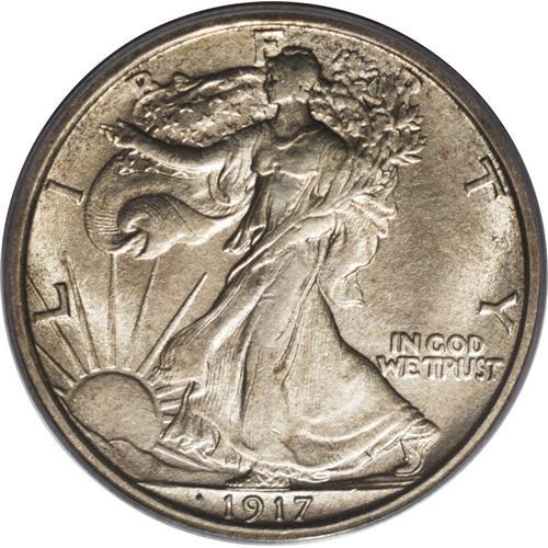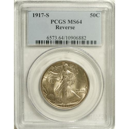 <B>1917-S 50C Reverse MS64 PCGS.</B></I> This silver-gold coin shows fine-grained, mattelike surfaces on each side, with good luster. The decent strike shows a split thumb on Liberty, but there is still some flatness nearby and on the head. This well-preserved specimen shows relatively few contact marks, even under a loupe.<BR><BR><b>Shipping:</b> Coins & Currency (<a target="_blank" href="http://www.heritageauctions.com/common/shipping.php">view shipping information</a>)