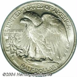 <table><tr><td><table><tr><td>1917-S 50C Reverse MS66 PCGS. The mintage of the 1917-S Reverse Walking Liberty far exceeds that of its obverse mintmark counterpart and it is seen with much greater frequency in lower Mint State grades. In Gem and better condition, however, both issues are particularly scarce. In fact, the number of 1917-S Reverse Half Dollars certified in MS66 by the two major services can be counted on two hands with a few fingers to spare. A quick check in our auction archives indicates that we have never offered an example that exceeded MS65. The coin offered is certainly deserving of its elite status. The impeccable surfaces exhibit a bright, frosty-white sheen and equally impressive sharpness. Surface marks are not only minimal, but trivial as well. Just a spectacular coin for the connoisseur of Walking Liberty Halves. Population: 7 in 66, 0 finer (2/04).From the Nicholas Collection. <BR><BR><B>Important notice:</B> Heritage usually auctions material at the rate of 200-250 lots per hour. On some occasions eBay Live bid software or the Internet may not be able to keep up with the pace of the auction. We recommend placing a realistic absentee bid now as insurance to avoid disappointment. Occasionally the auctioneer may eliminate or reject an eBay Live bid, and the auctioneer may also reopen a lot after the close of the eBay live bidding (usually because we missed an audience bid), and may reject your bid even if it shows you as the winning bidder. By bidding via eBay Live, you agree that Heritage may award the lot to another bidder at its sole discretion under the circumstances described above or any other reasonable circumstances. Since eBay bids are not shown to us until we open the lot on the floor, we treat those bids just like floor bids. In most cases the floor responds before the eBay bid is presented to us, due to Internet lag time, so for consistency we have made it a policy that floor bids are always considered first over tie eBay live bids. Also please note that all Heritage lots purchased through eBay Live carry a 20% Buyer's Premium. Please make sure you read the Terms and Conditions before you bid. <BR><BR><B>IMPORTANT ANNOUNCEMENT ABOUT RESERVES:</B> Heritage now divulges all reserves on its web site 7 days before every auction. If you want to know whether the reserve on this lot has been met, and if not, what the reserve amount is, please visit this lot page on the HeritageCoin.com web site, or email: bid@HeritageGalleries.com </span></font></td></tr></table></td></tr></table>