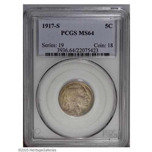 <B>1917-S<5C> MS64 PCGS.</B></I> Wisps of champagne color adhere to lustrous surfaces. The design features are well impressed, and the grade is limited by some minute handling marks scattered over each side. Population: 143 in 64, 85 finer (9/05).