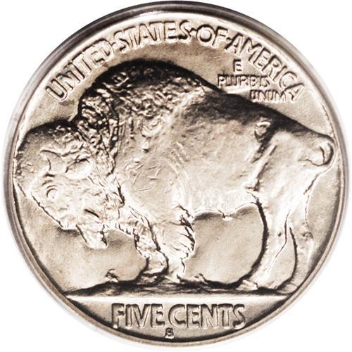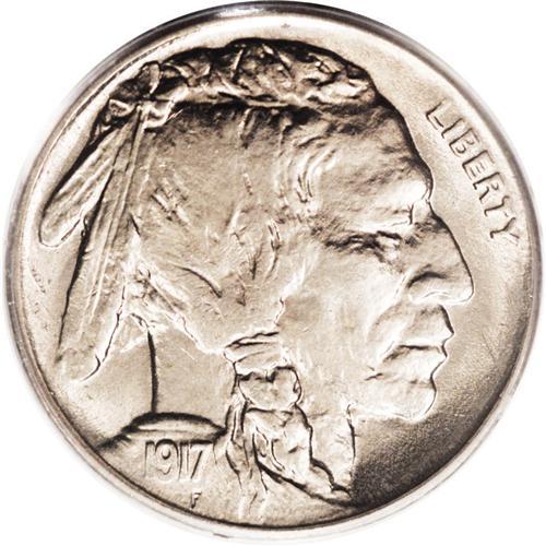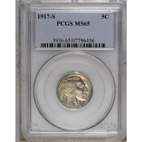 <B>1917-S<5C> MS65 PCGS.</B></I> Well struck except for the top of the bison's head, with bright satiny luster and lightly toned surfaces. Die clash marks are noted beneath the Indian's chin, and a handful of closely grouped nicks are observed on the bison's shoulder. A pleasing Gem example of this early branch mint issue. Population: 77 in 65, 21 finer (8/06).