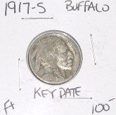 1917-S BUFFALO NICKEL RED BOOK VALUE IS $100.00 *EXTREMELY RARE KEY DATE FINE+ GRADE*!! ***Coin, Currency & All Items Listed in this auction - Grades, Conditions and Values are not Safe Deposit Coins LLC Responsibilty. Grades, Condition and Values are determined by Consigner(s) & Buyers ONLY***