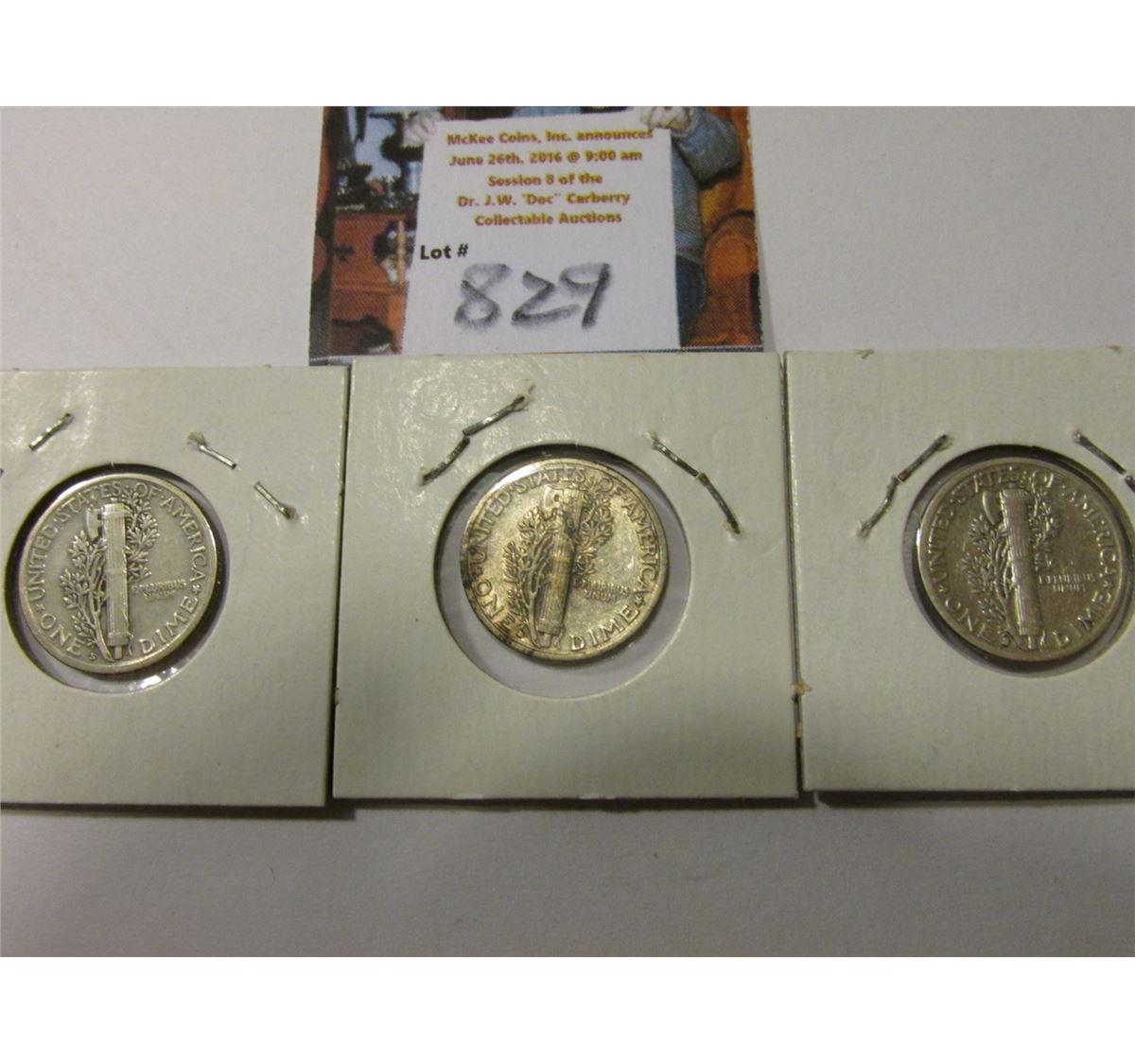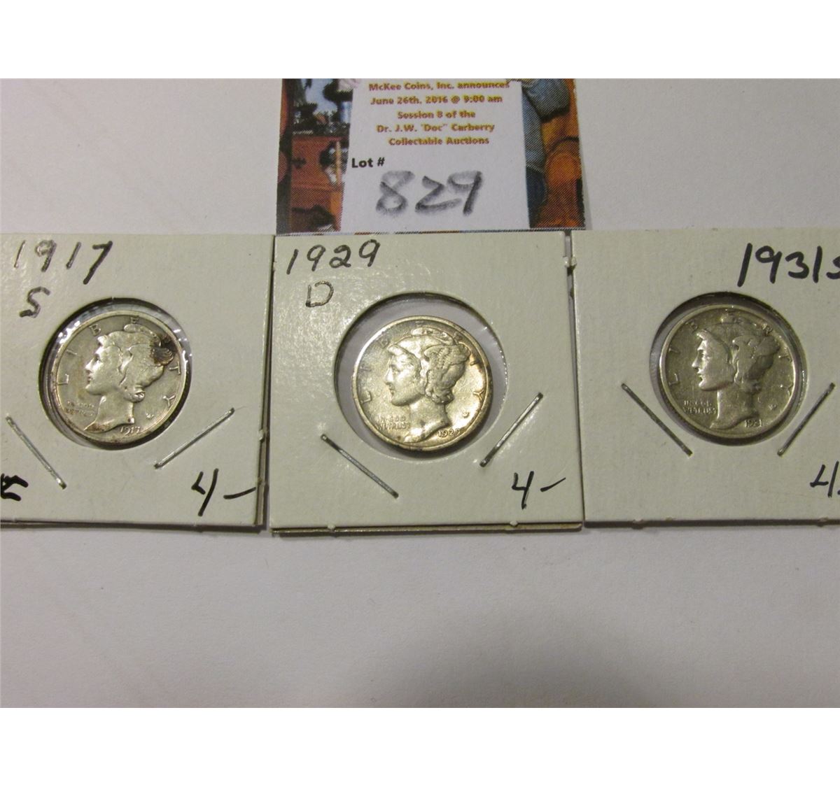 1917 S Fine, 29 D Fine, & 31 S VG-F Mercury Dimes.