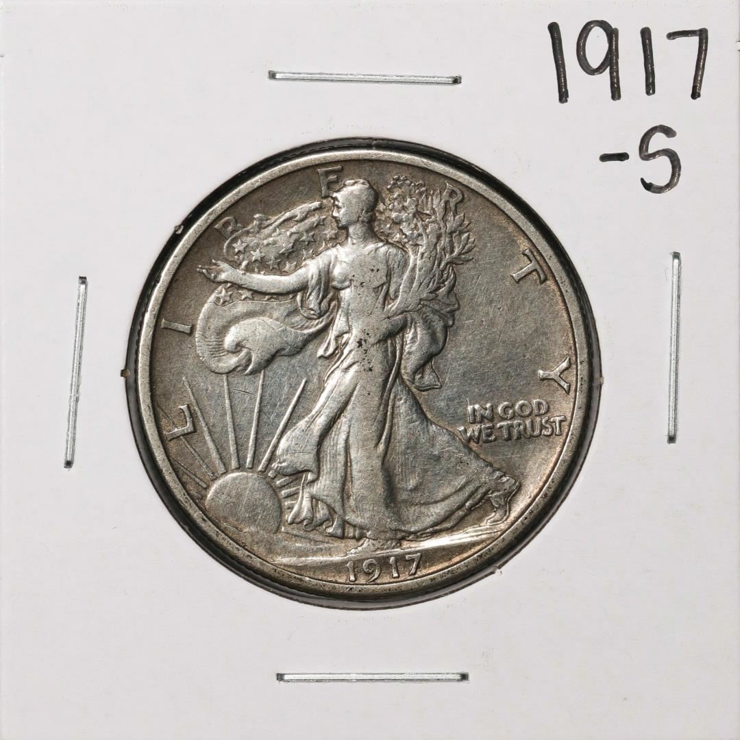 One 1917-S Reverse Walking Liberty Half Dollar Coin.