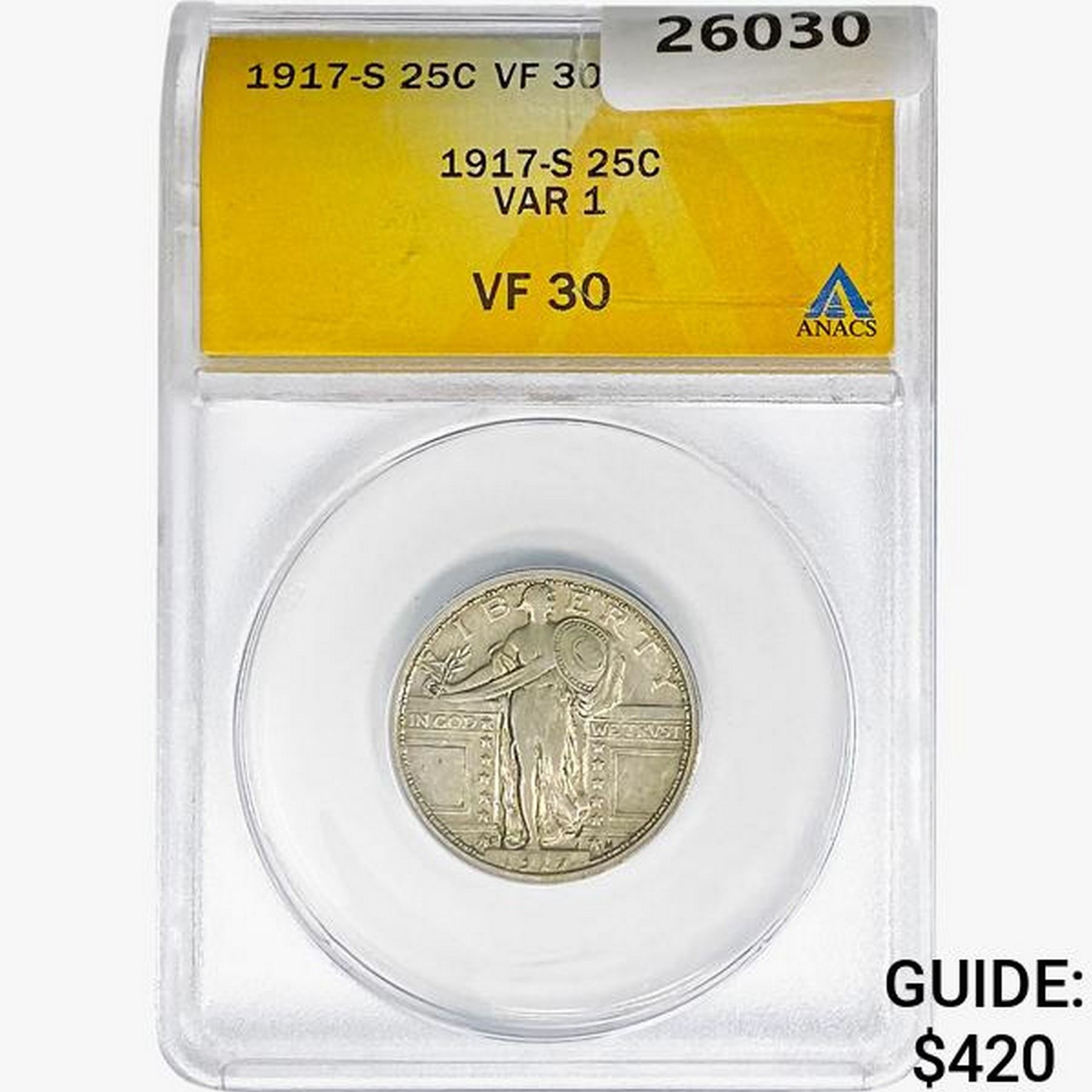 1917-S Standing Liberty Quarter ANACS VF30 VAR-1