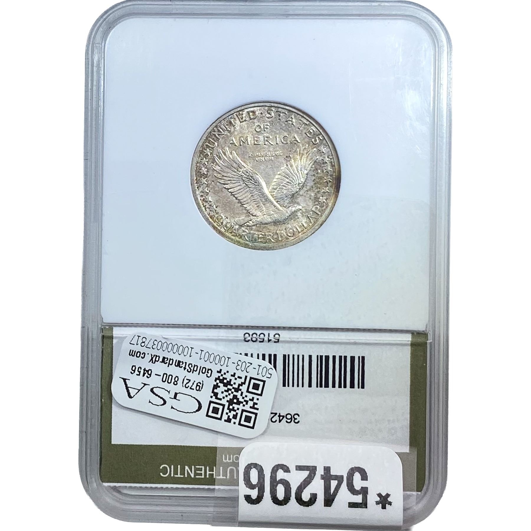 l. All non-certified coins and currency are guaranteed genuine, but are not guaranteed as to grade, since grading is a matter of opinion, an art and not a science, and therefore the description rendered by GSA or any third-party grading service may not agree with the opinion of others (including trained experts), and the same expert may not grade the same item with the same grade at two different times. GSA may, but is not obligated to, express an opinion as to non-certified numismatic items, in GSA’s opinion, or by its employees’ experience and the current interpretation of the American Numismatic Association’s standards as of the date the catalog was prepared. There is no guarantee or warranty expressed or implied that the grading opinions utilized by GSA, if any, will meet the standards of any grading service at any time in the future.