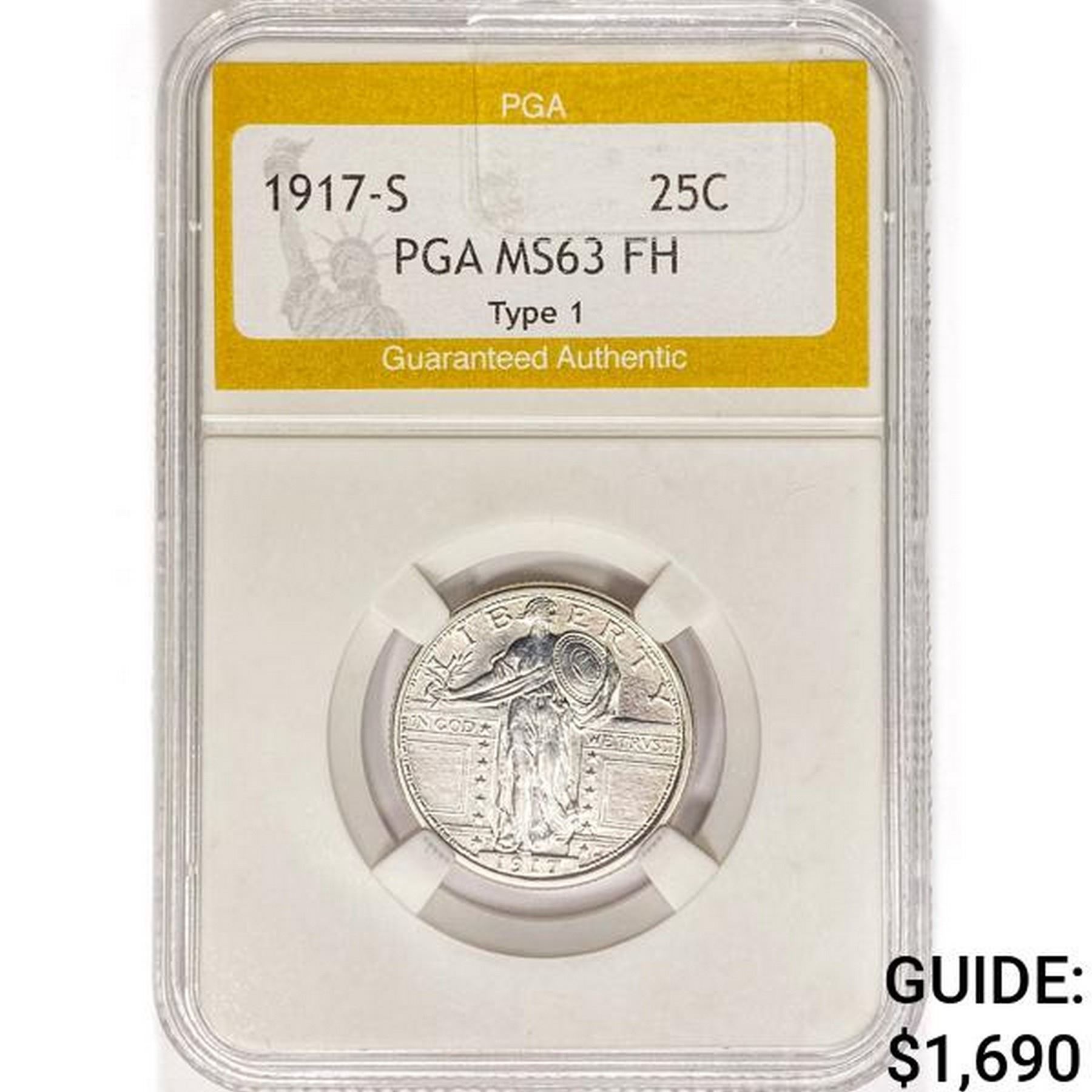 1917-S Standing Liberty Quarter PGA MS63 FH Type 1