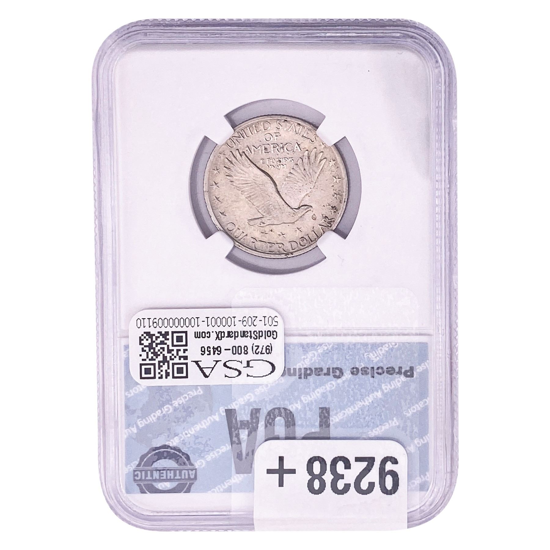 c. THREE (3) DAY RETURN POLICY. Certified Coin and Uncertified and Certified Currency lots paid for within seven (7) days of the auction or “Buy it Now” salemay be sold with three (3) day return privileges (only upon written pre-approval by GSA) unless otherwise noted in the description as “Sold As Is / No Return”. You may return Product(s) under the following limited conditions with written pre-approval from GSA: (i) within three (3) days of receipt of the Product(s), you must first notify GSA by email (at info@bidgoldstandard.com) and telephone (972-800-6456), obtain written pre-approval via email, and immediately ship the return Product(s) in their original condition, fully insured, and housed in their original holder or packaging, to the attention of “GOLD STANDARD AUCTIONS, LLC – RETURNS, 13859 Diplomat Drive, #150, Dallas, TX 75234.” Said return Product(s) must be in GSA’s possession, custody and control within thirty (30) days after the conclusion of the Product(s) auction or such return privileges are revoked without further notice and the late Product will be shipped back to the Bidder at his/her/its sole expense. A non-negotiable restocking fee of fifteen percent (15%) of the purchase price ($10.00 per Product/lot minimum) will be deducted from the refund for each returned Product (or billed directly to the Bidder). Postage and handling, customs, and other fees are not refunded. After the three-day period (from Bidder’s receipt), no Product(s) may be returned for any reason. Late remittance for purchases revokes all return privileges.