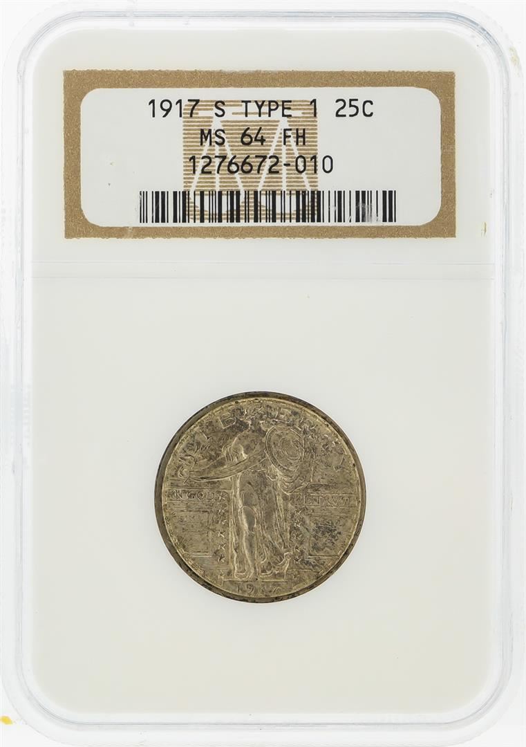 One 1917-S Standing Liberty Quarter Type 1 NGC Graded MS64 FH. NGC Certified.