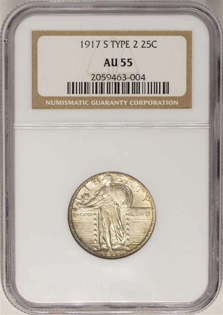 One 1917-S Type 2 Standing Liberty Quarter Coin NGC AU55. NGC Certified.
