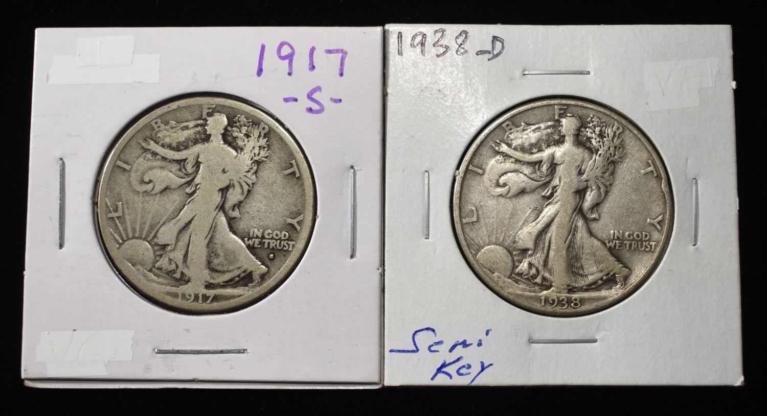 1917-S VG & 1938-D VF WALKING LIBERTY HALF DOLLAR