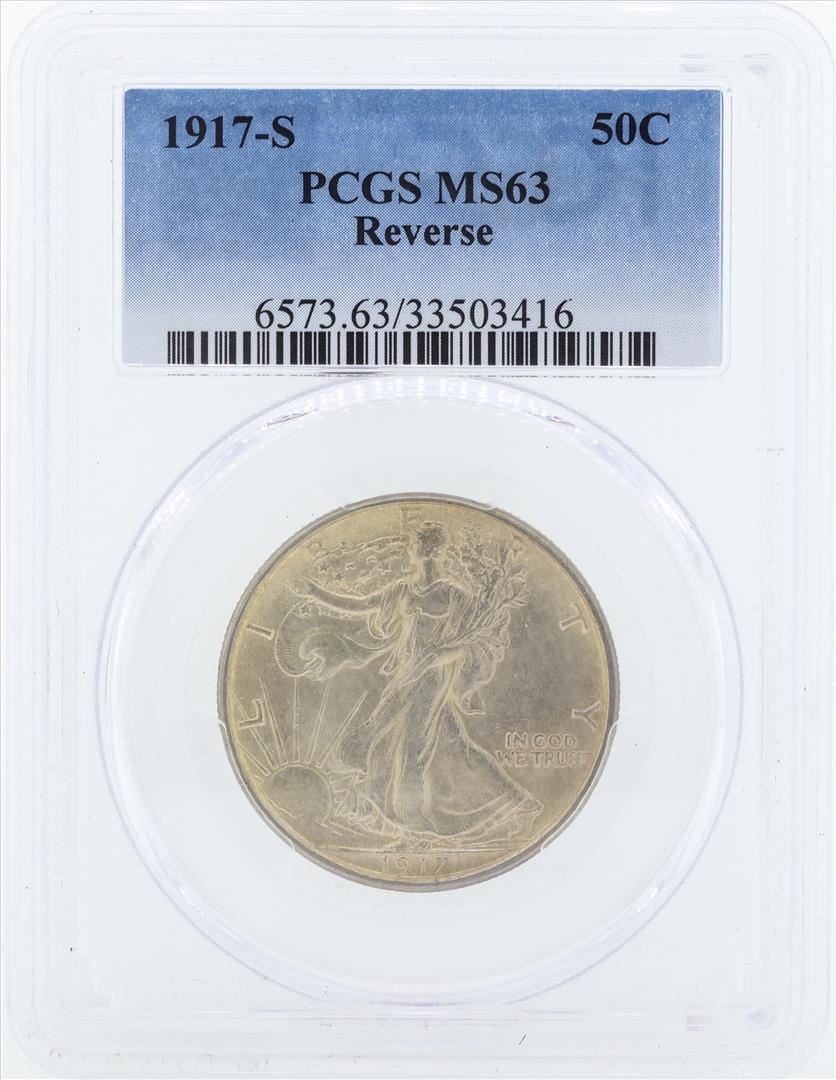 One 1917-S Walking Liberty Half Dollar Coin PCGS MS63 Reverse. PCGS Graded.