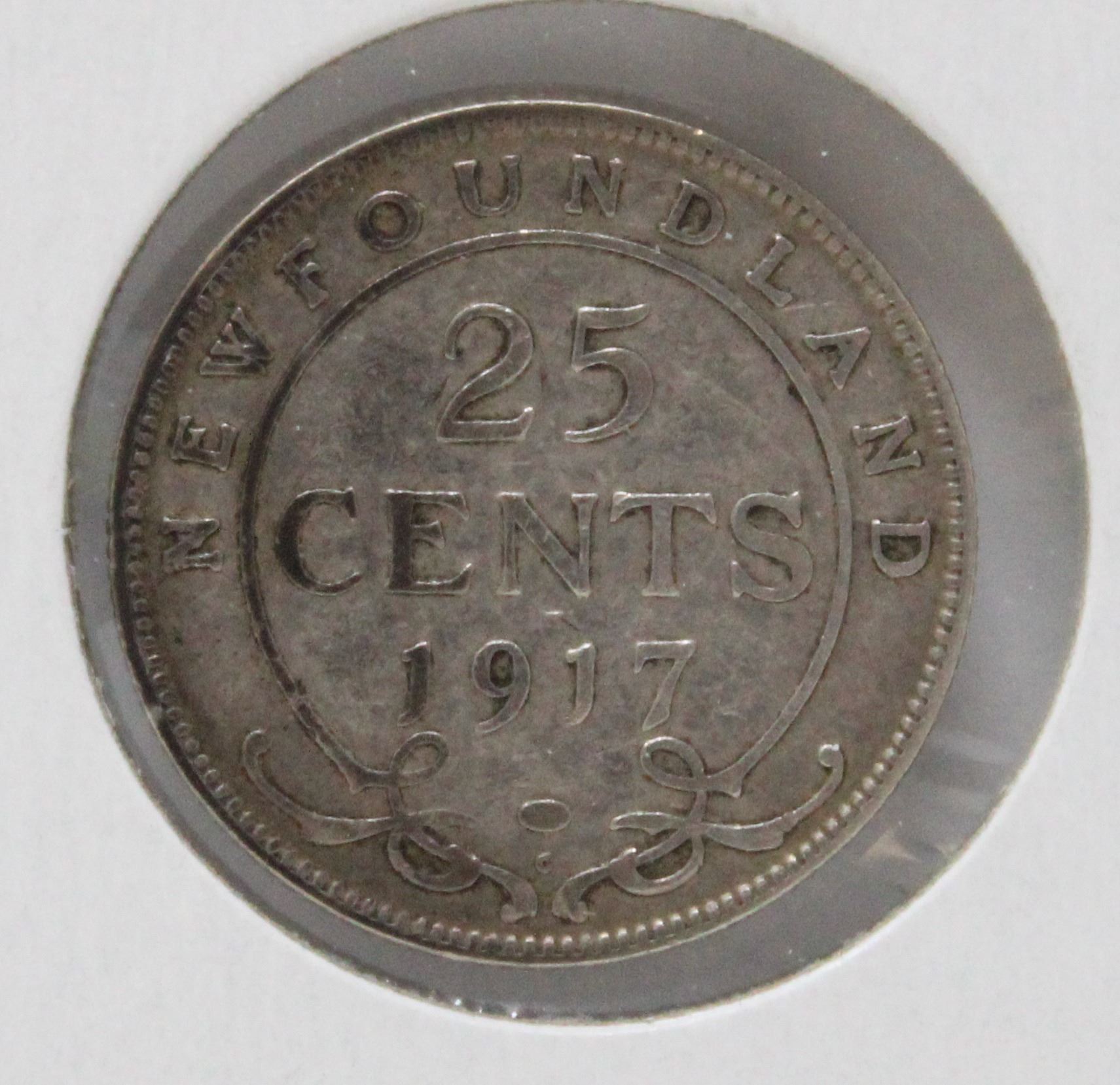 1917 SILVER NEWFOUNDLAND 25 CENTS COIN, FINE