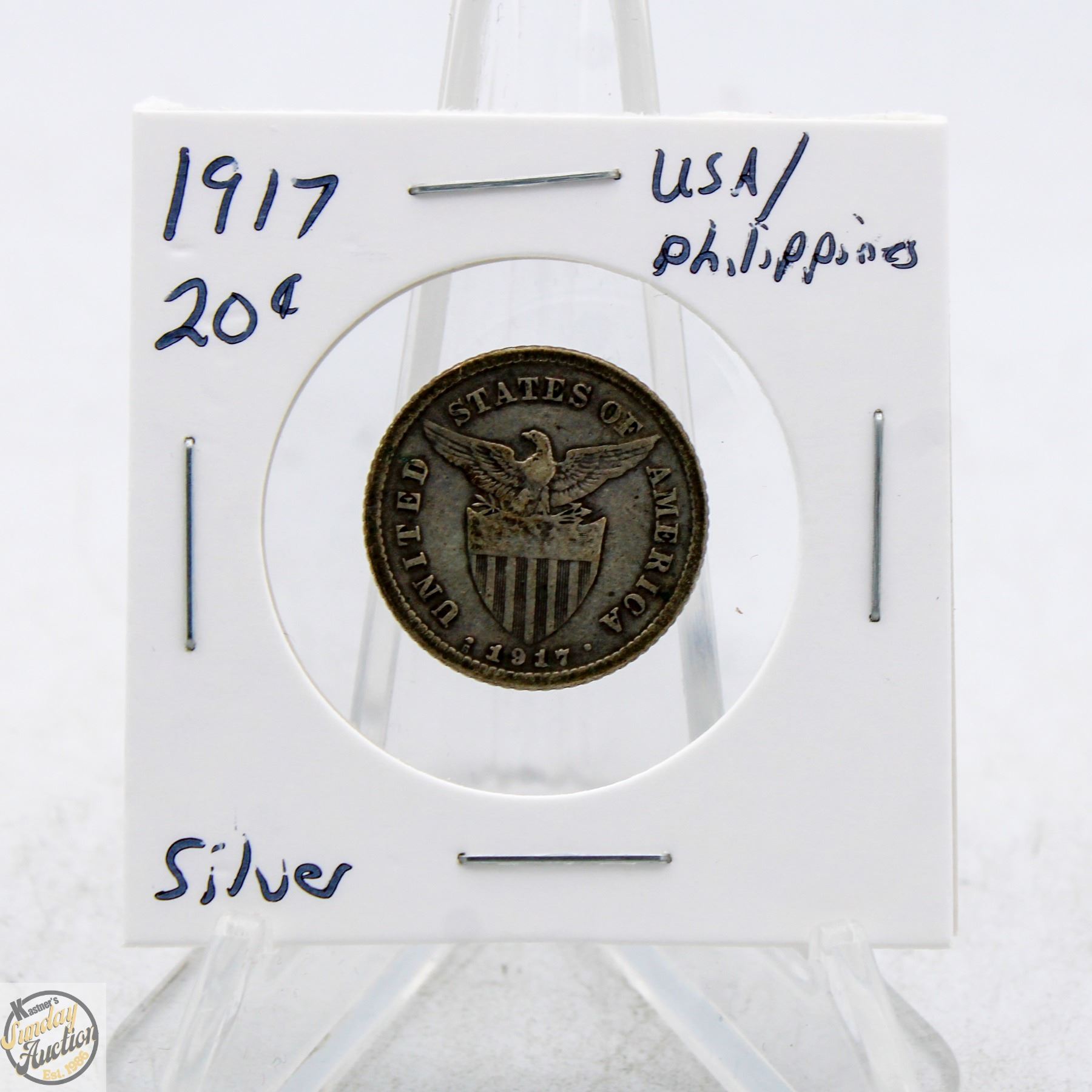1917 SILVER USA/PHILIPPINES 20 CENTAVOS COIN