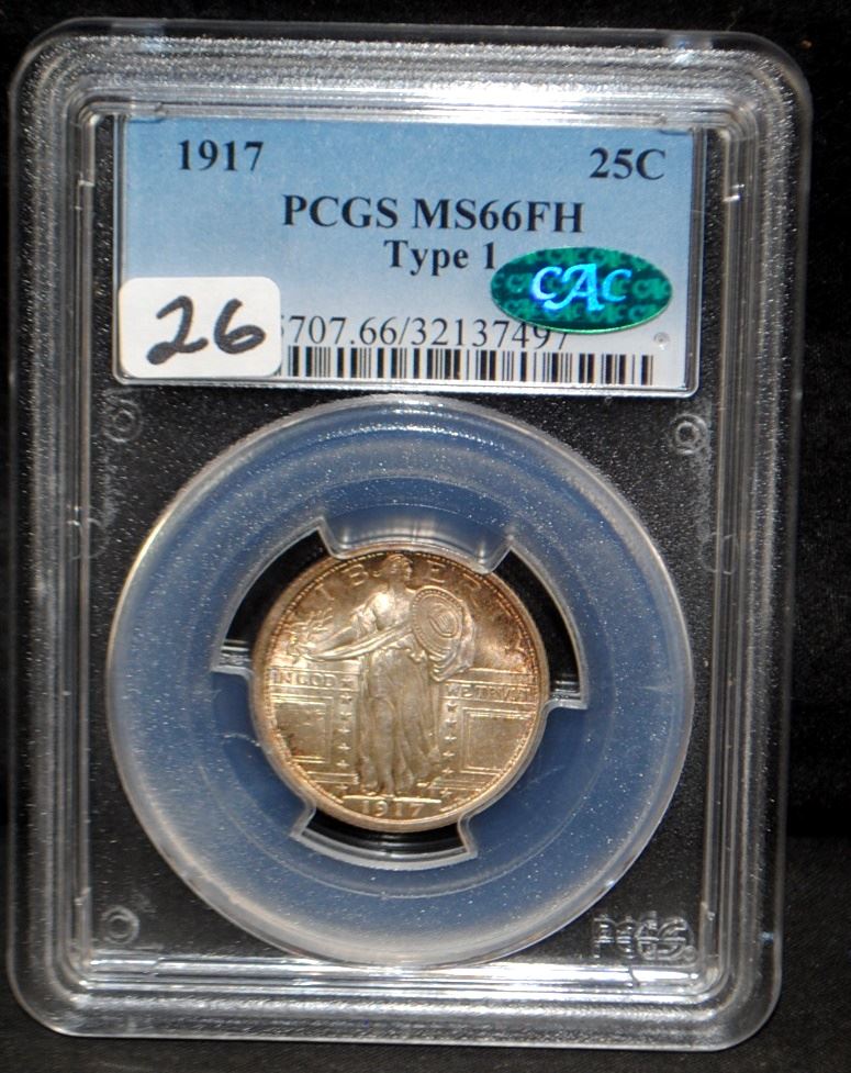 RARE 1917 STANDING LIBERTY QUARTER PCGS MS66FH (FULL HEAD) WITH THE "CAC" DESIGNATION! (THE CURRENT PCGS PRICE GUIDE LISTS AT @ $1,950.00)