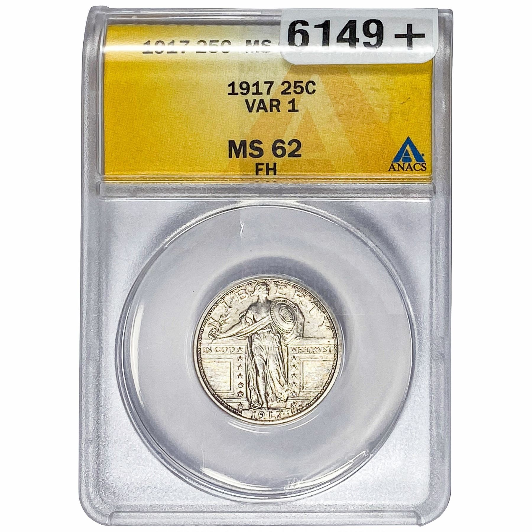1917 Standing Liberty Quarter ANACS MS62 FH Var. 1