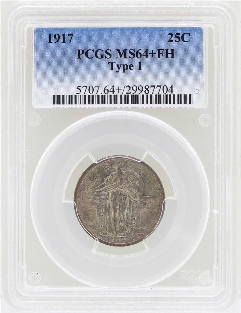 One 1917 Standing Liberty Quarter Coin Type 1 PCGS MS64+FH. PCGS Graded.