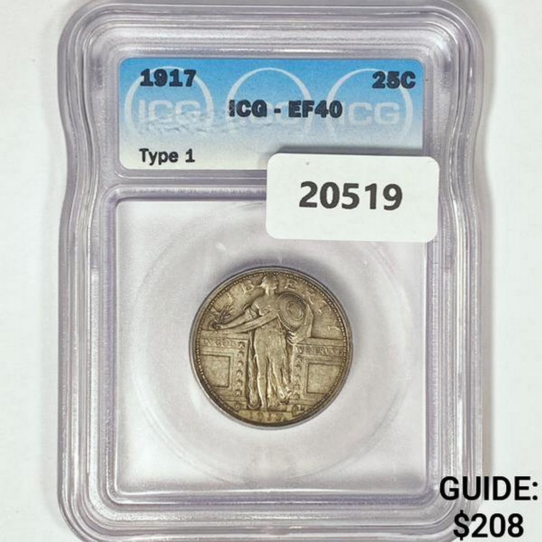 1917 Standing Liberty Quarter ICG EF40 Type 1
