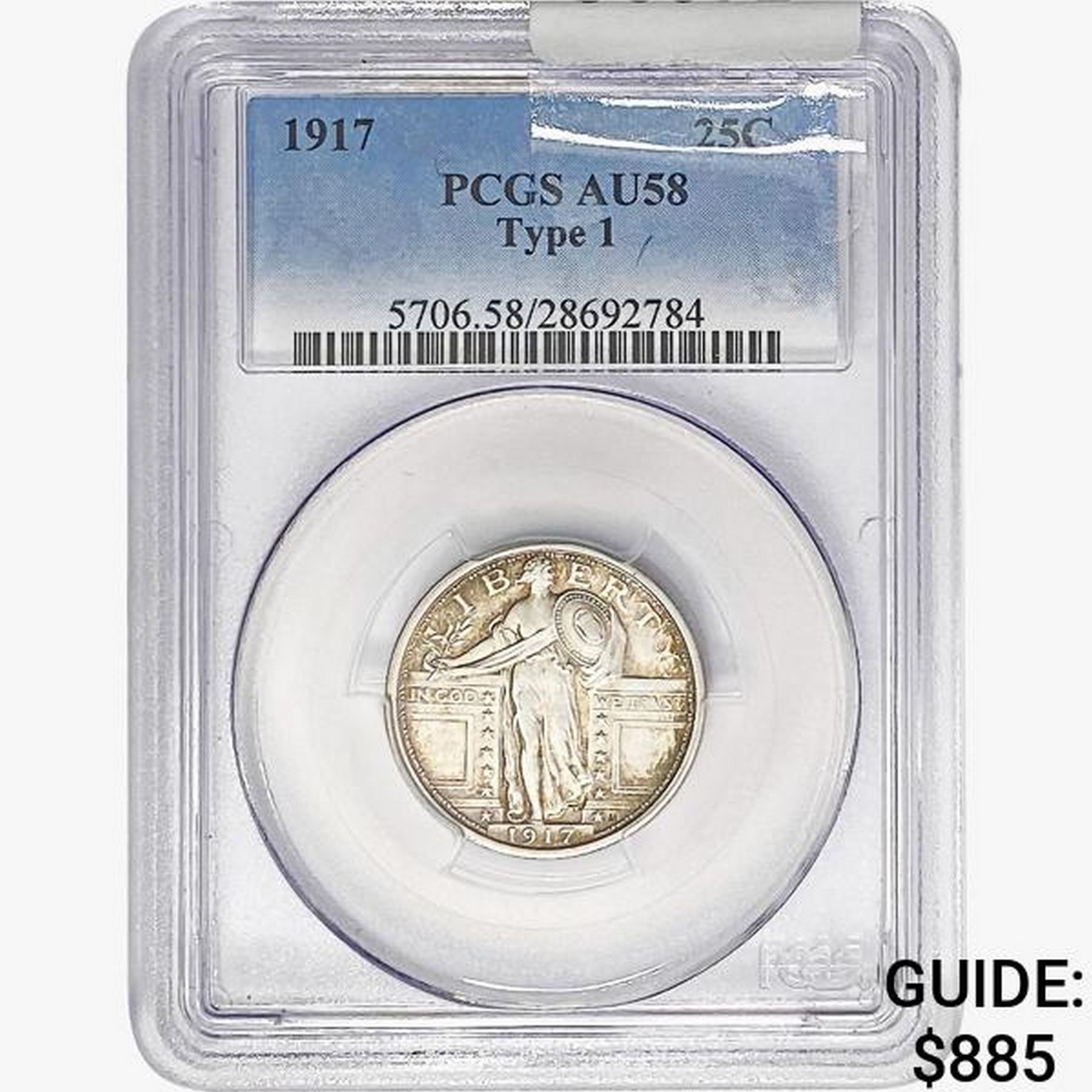 1917 Standing Liberty Quarter PCGS AU58 Type 1
