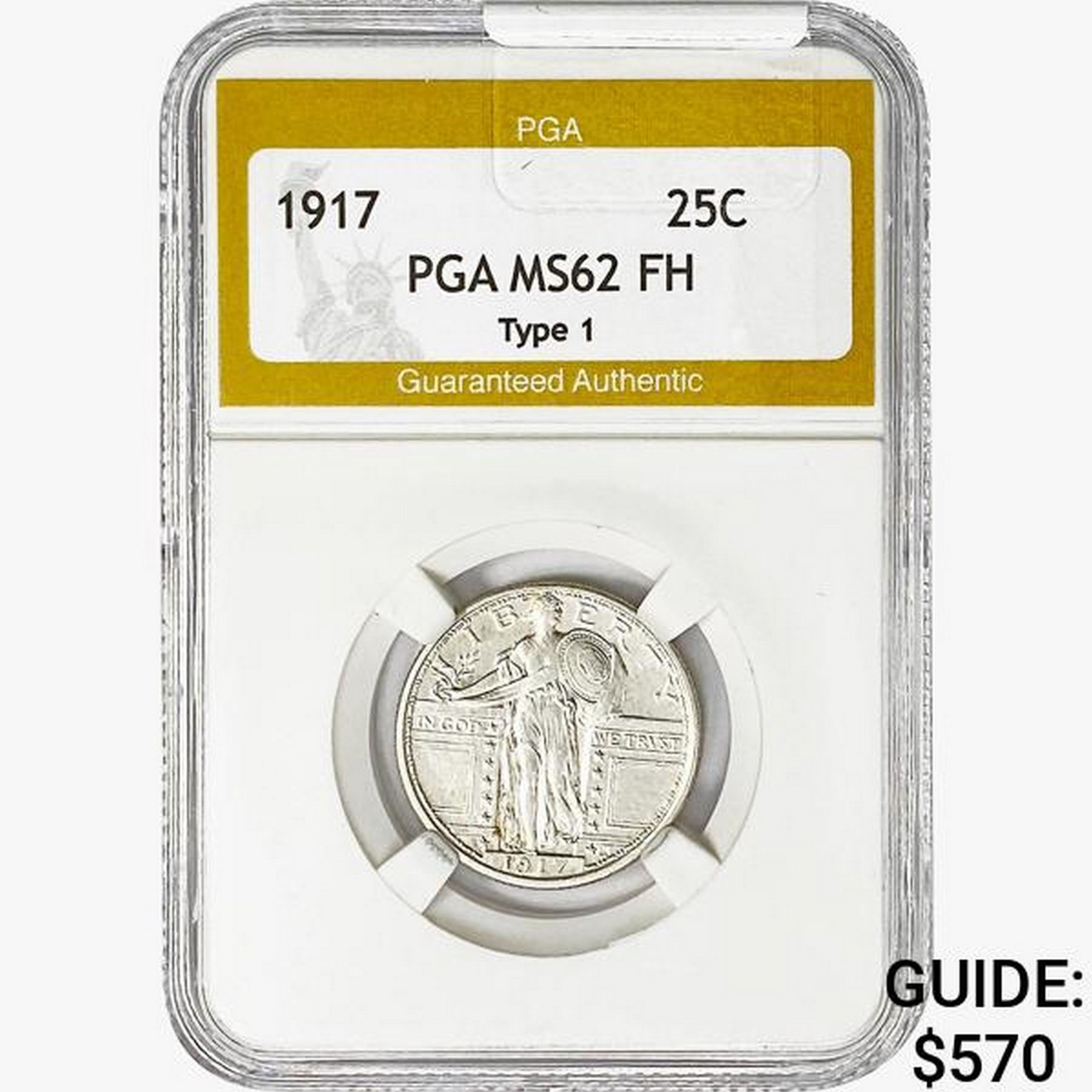 1917 Standing Liberty Quarter PGA MS62 FH Type 1