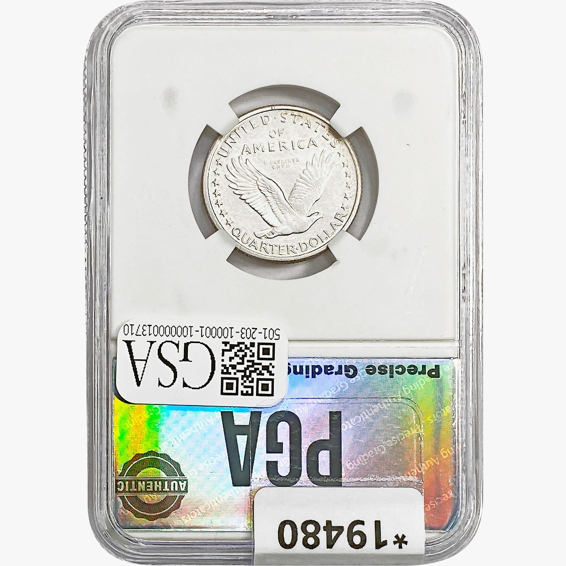 COINS AND CURRENCY LISTED IN GSA'S CATALOG AS GRADED AND ENCAPSULATED BY PCGS, NGC, ANACS, ICG, PCGS CURRENCY, PMG, PCGS BANKNOTE GRADING, CMC OR ANY OTHER THIRD-PARTY GRADING SERVICE ARE LIKEWISE SOLD "AS-IS" EXCEPT AS EXPRESSLY SET FORTH HEREIN. ALL THIRD-PARTY GRADING SERVICE GUARANTEES, INCLUDING AUTHENTICITY, ARE THE SOLE RESPONSIBILITY OF THE THIRD-PARTY GRADING SERVICE AND NOT WARRANTIES OR GUARANTEES OF GSA. BIDDERS SHOULD CONTACT THESE THIRD-PARTY GRADING SERVICES DIRECTLY WITH RESPECT TO ANY CLAIMS OR QUESTIONS THEY MAY HAVE CONCERNING THEIR GUARANTEES AND WARRANTIES. BIDDERS ACKNOWLEDGE AND AGREE THAT AUCTIONEER IS NOT BOUND BY OR LIABLE FOR ANY OPINION OR CERTIFICATION BY ANY THIRD-PARTY GRADING SERVICE. REMOVAL OF A PRODUCT FROM ITS PROTECTIVE CASING OR HOLDER OR ALTERATION OF ANY COIN HOLDER WAIVES ALL RIGHTS CONCERNING THE PRODUCT CONTAINED THEREIN.