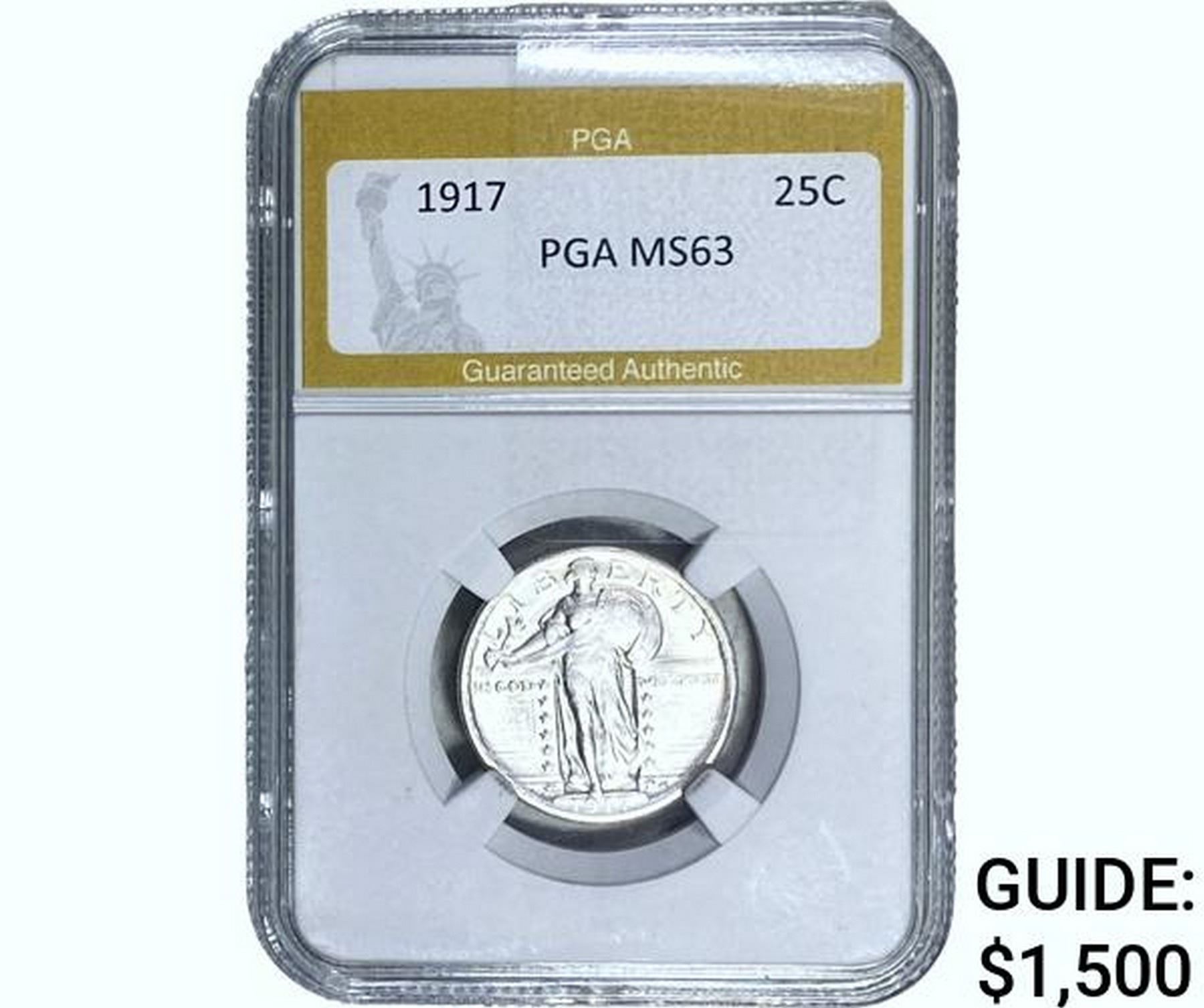 COINS AND CURRENCY LISTED IN GSA’S CATALOG AS GRADED AND ENCAPSULATED BY PCGS, NGC, ANACS, ICG, PCGS CURRENCY, PMG, PCGS BANKNOTE GRADING, CMC OR ANY OTHER THIRD-PARTY GRADING SERVICE ARE LIKEWISE SOLD “AS-IS” EXCEPT AS EXPRESSLY SET FORTH HEREIN. ALL THIRD-PARTY GRADING SERVICE GUARANTEES, INCLUDING AUTHENTICITY, ARE THE SOLE RESPONSIBILITY OF THE THIRD-PARTY GRADING SERVICE AND NOT WARRANTIES OR GUARANTEES OF GSA. BIDDERS SHOULD CONTACT THESE THIRD-PARTY GRADING SERVICES DIRECTLY WITH RESPECT TO ANY CLAIMS OR QUESTIONS THEY MAY HAVE CONCERNING THEIR GUARANTEES AND WARRANTIES. BIDDERS ACKNOWLEDGE AND AGREE THAT AUCTIONEER IS NOT BOUND BY OR LIABLE FOR ANY OPINION OR CERTIFICATION BY ANY THIRD-PARTY GRADING SERVICE. REMOVAL OF A PRODUCT FROM ITS PROTECTIVE CASING OR HOLDER OR ALTERATION OF ANY COIN HOLDER WAIVES ALL RIGHTS CONCERNING THE PRODUCT CONTAINED THEREIN.