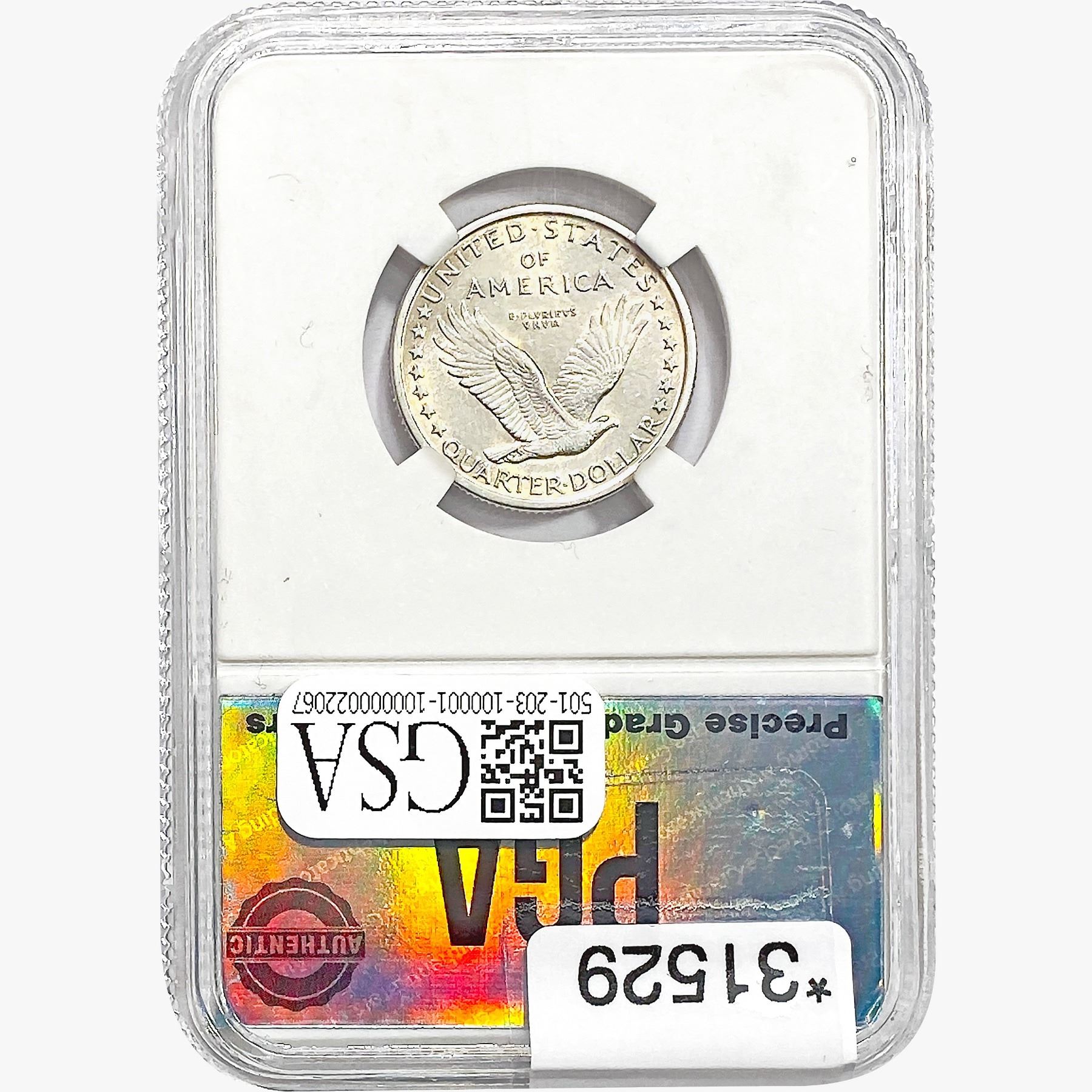 COINS AND CURRENCY LISTED IN GSA’S CATALOG AS GRADED AND ENCAPSULATED BY PCGS, NGC, ANACS, ICG, PCGS CURRENCY, PMG, PCGS BANKNOTE GRADING, CMC OR ANY OTHER THIRD-PARTY GRADING SERVICE ARE LIKEWISE SOLD “AS-IS” EXCEPT AS EXPRESSLY SET FORTH HEREIN. ALL THIRD-PARTY GRADING SERVICE GUARANTEES, INCLUDING AUTHENTICITY, ARE THE SOLE RESPONSIBILITY OF THE THIRD-PARTY GRADING SERVICE AND NOT WARRANTIES OR GUARANTEES OF GSA. BIDDERS SHOULD CONTACT THESE THIRD-PARTY GRADING SERVICES DIRECTLY WITH RESPECT TO ANY CLAIMS OR QUESTIONS THEY MAY HAVE CONCERNING THEIR GUARANTEES AND WARRANTIES. BIDDERS ACKNOWLEDGE AND AGREE THAT AUCTIONEER IS NOT BOUND BY OR LIABLE FOR ANY OPINION OR CERTIFICATION BY ANY THIRD-PARTY GRADING SERVICE. REMOVAL OF A PRODUCT FROM ITS PROTECTIVE CASING OR HOLDER OR ALTERATION OF ANY COIN HOLDER WAIVES ALL RIGHTS CONCERNING THE PRODUCT CONTAINED THEREIN.