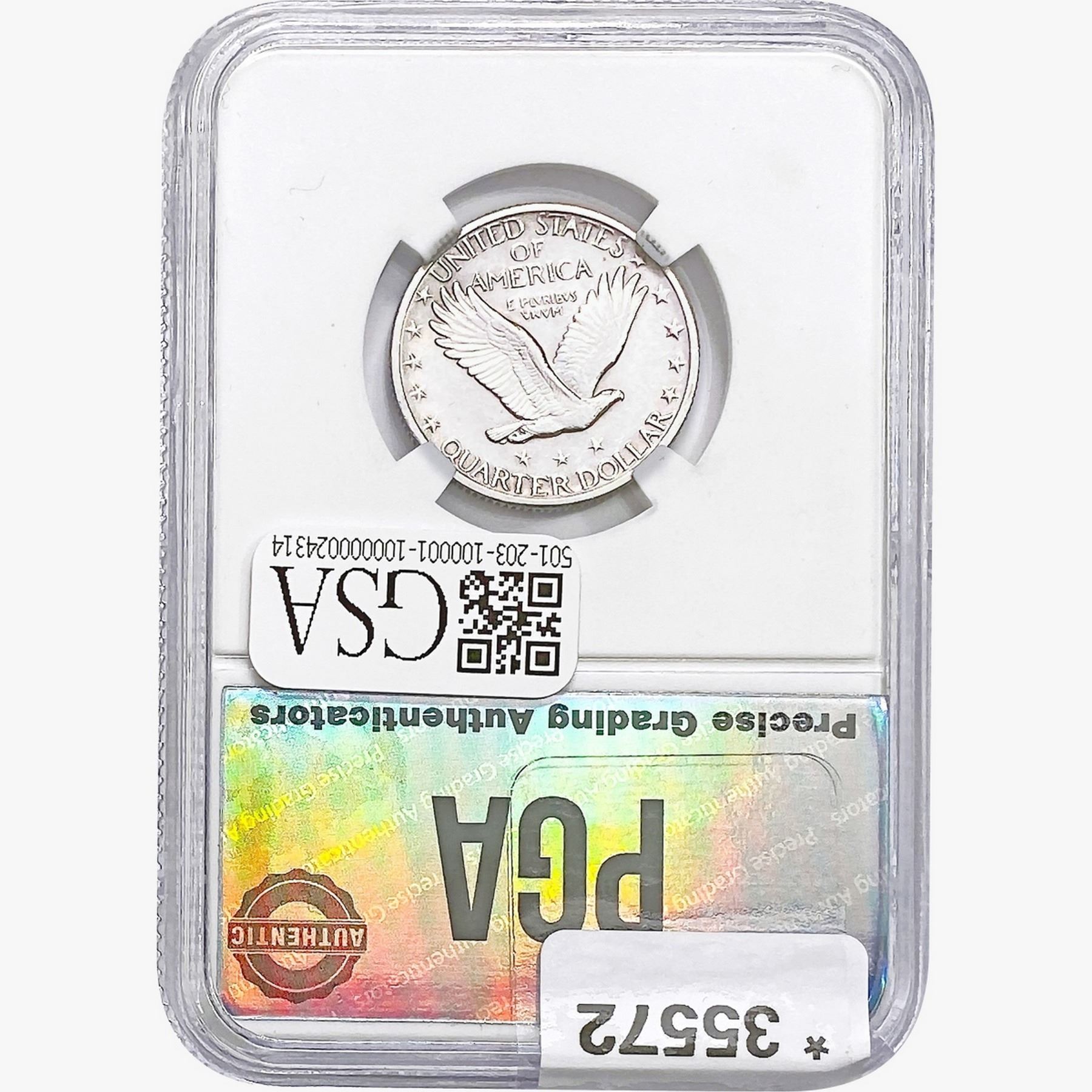 COINS AND CURRENCY LISTED IN GSA’S CATALOG AS GRADED AND ENCAPSULATED BY PCGS, NGC, ANACS, ICG, PCGS CURRENCY, PMG, PCGS BANKNOTE GRADING, CMC OR ANY OTHER THIRD-PARTY GRADING SERVICE ARE LIKEWISE SOLD “AS-IS” EXCEPT AS EXPRESSLY SET FORTH HEREIN. ALL THIRD-PARTY GRADING SERVICE GUARANTEES, INCLUDING AUTHENTICITY, ARE THE SOLE RESPONSIBILITY OF THE THIRD-PARTY GRADING SERVICE AND NOT WARRANTIES OR GUARANTEES OF GSA. BIDDERS SHOULD CONTACT THESE THIRD-PARTY GRADING SERVICES DIRECTLY WITH RESPECT TO ANY CLAIMS OR QUESTIONS THEY MAY HAVE CONCERNING THEIR GUARANTEES AND WARRANTIES. BIDDERS ACKNOWLEDGE AND AGREE THAT AUCTIONEER IS NOT BOUND BY OR LIABLE FOR ANY OPINION OR CERTIFICATION BY ANY THIRD-PARTY GRADING SERVICE. REMOVAL OF A PRODUCT FROM ITS PROTECTIVE CASING OR HOLDER OR ALTERATION OF ANY COIN HOLDER WAIVES ALL RIGHTS CONCERNING THE PRODUCT CONTAINED THEREIN.