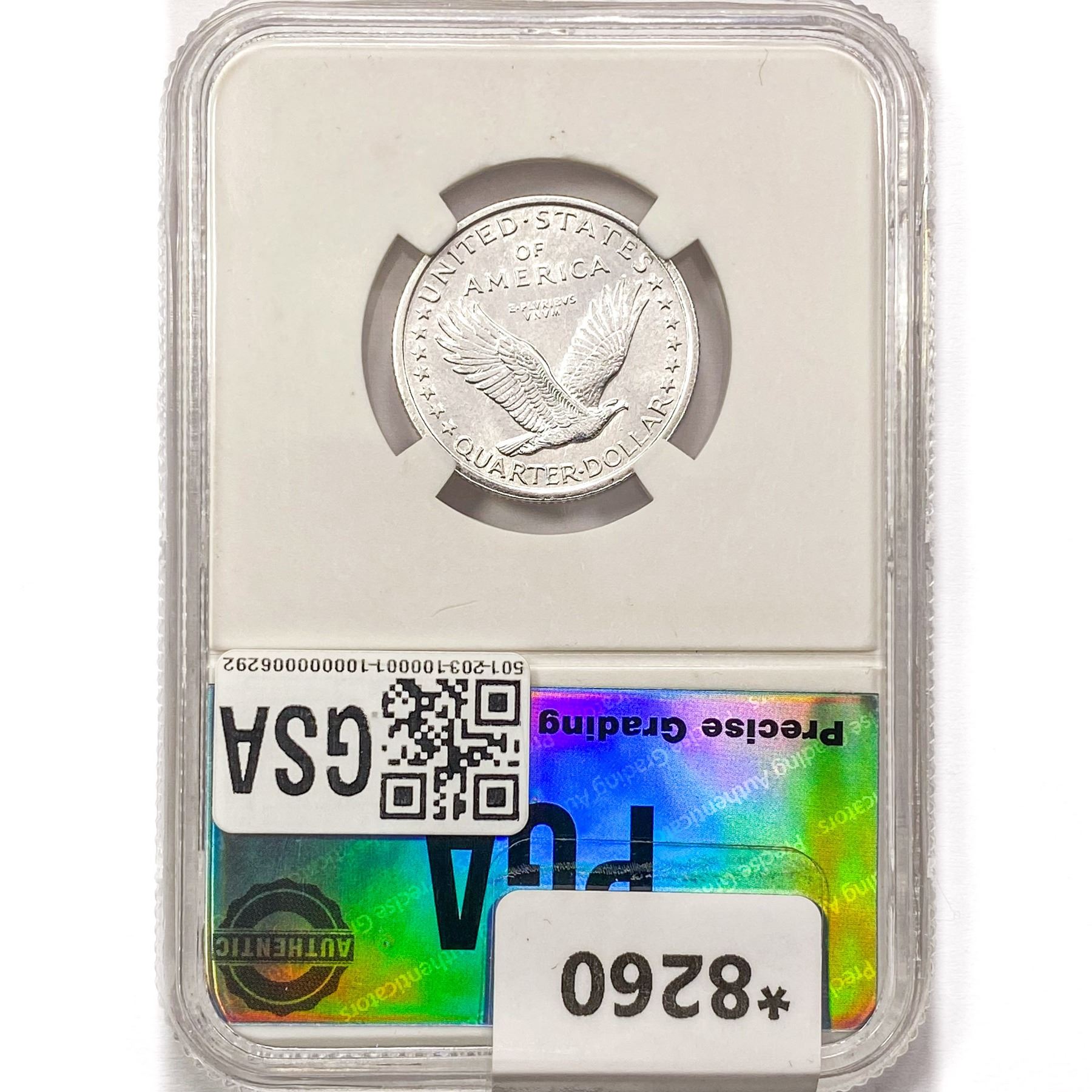 COINS AND CURRENCY LISTED IN GSA’S CATALOG AS GRADED AND ENCAPSULATED BY PCGS, NGC, ANACS, ICG, PCGS CURRENCY, PMG, PCGS BANKNOTE GRADING, CMC OR ANY OTHER THIRD-PARTY GRADING SERVICE ARE LIKEWISE SOLD “AS-IS” EXCEPT AS EXPRESSLY SET FORTH HEREIN. ALL THIRD-PARTY GRADING SERVICE GUARANTEES, INCLUDING AUTHENTICITY, ARE THE SOLE RESPONSIBILITY OF THE THIRD-PARTY GRADING SERVICE AND NOT WARRANTIES OR GUARANTEES OF GSA. BIDDERS SHOULD CONTACT THESE THIRD-PARTY GRADING SERVICES DIRECTLY WITH RESPECT TO ANY CLAIMS OR QUESTIONS THEY MAY HAVE CONCERNING THEIR GUARANTEES AND WARRANTIES. BIDDERS ACKNOWLEDGE AND AGREE THAT AUCTIONEER IS NOT BOUND BY OR LIABLE FOR ANY OPINION OR CERTIFICATION BY ANY THIRD-PARTY GRADING SERVICE. REMOVAL OF A PRODUCT FROM ITS PROTECTIVE CASING OR HOLDER OR ALTERATION OF ANY COIN HOLDER WAIVES ALL RIGHTS CONCERNING THE PRODUCT CONTAINED THEREIN.