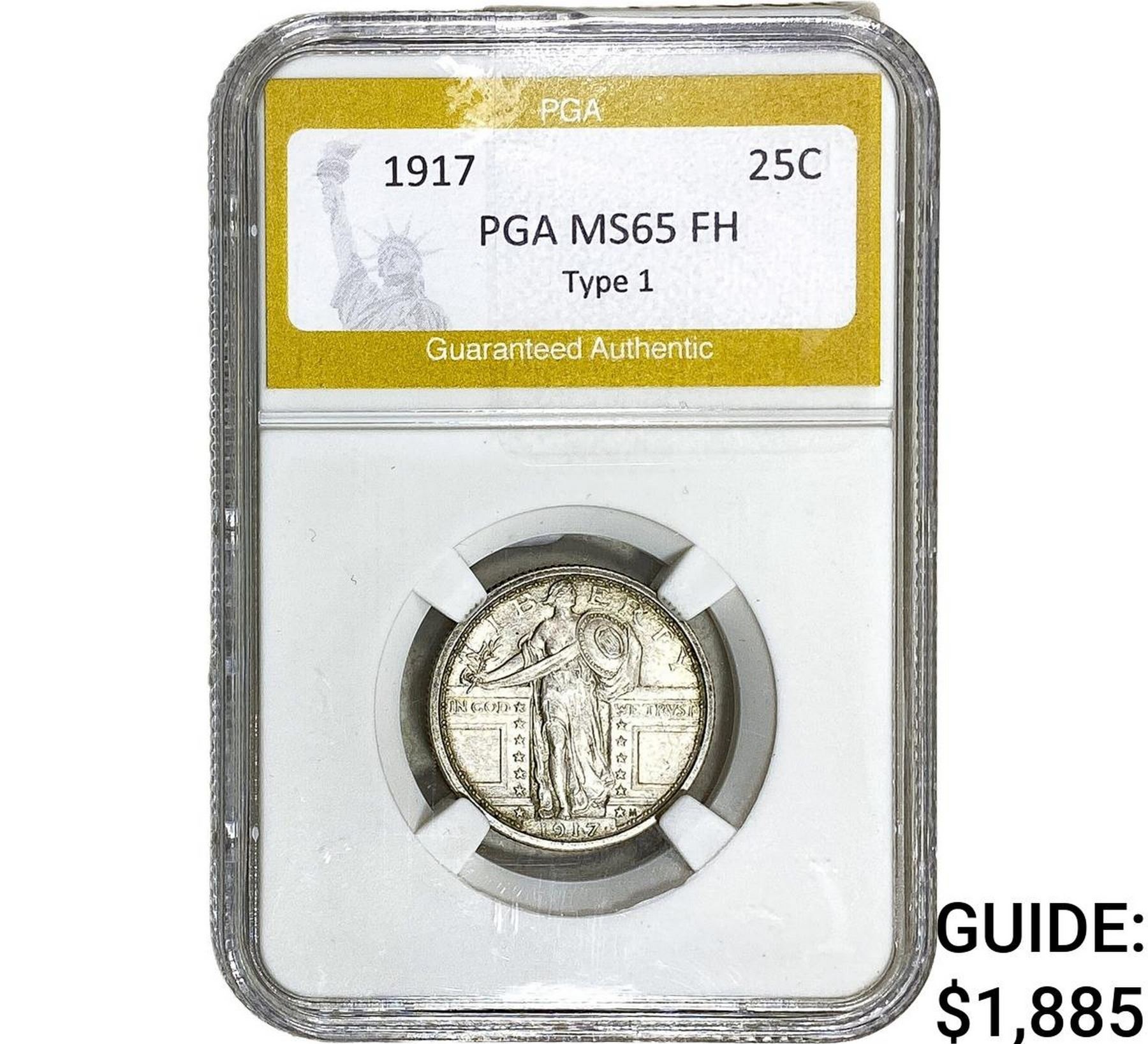 1917 T1 Standing Liberty Quarter PGA MS65 FH