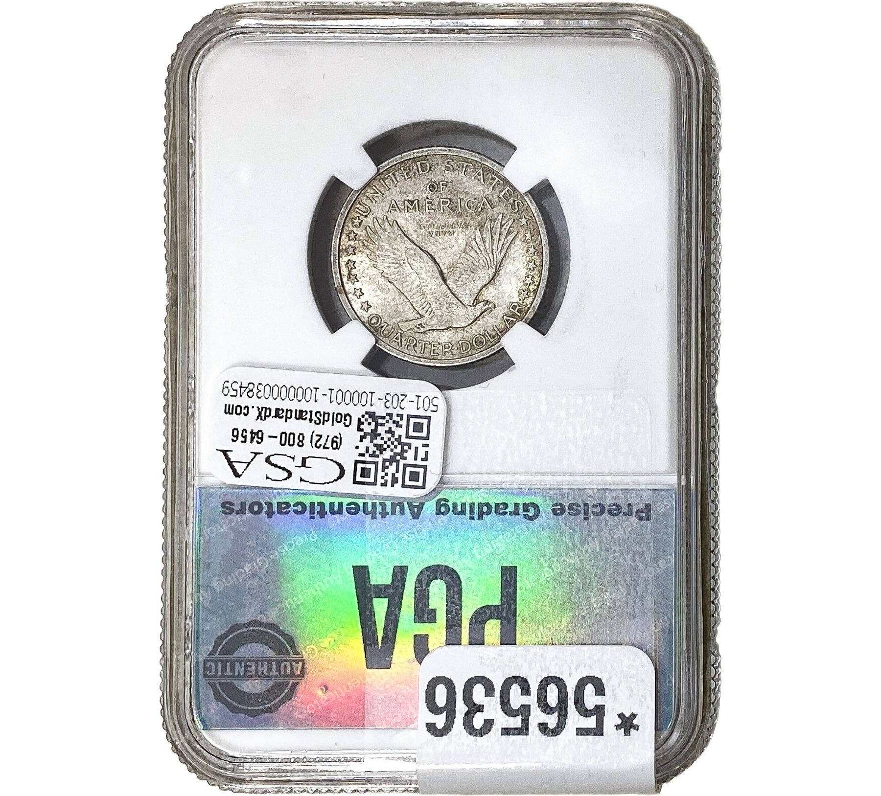 e. Coins sold referencing a third-party grading service are sold “AS IS” without any express or implied warranty, except for a guarantee by GSA that they are genuine. Removal or alteration of the holder, voids all of Bidder’s claims concerning that Product. Certain warranties may be available from the grading services and Bidders are referred to them for further details: Numismatic Guaranty Corporation (NGC), PO Box 4776, Sarasota, FL 34230, www.ngccoin.com/services/writtenguarantee.asp; Professional Coin Grading Services (PCGS), PO Box 9458, Newport Beach, CA 92658, www.pcgs.com/guarantee.html; ANACS, 6555 S. Kenton St., Ste. 303, Englewood, CO 80111; and Independent Coin Grading Co. (ICG), 7901 East Bellview, Ave., Suite 50, Englewood, CO 80111.