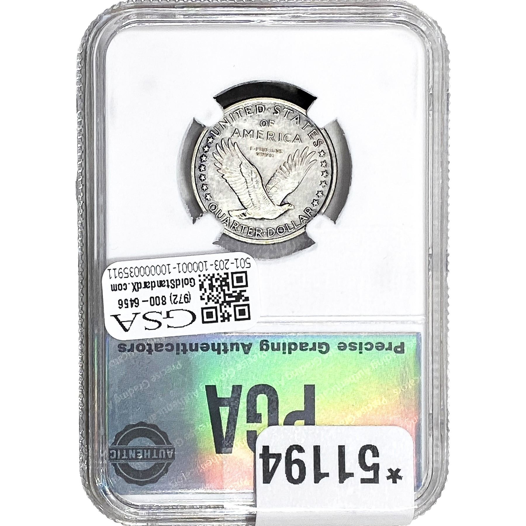 e. Coins sold referencing a third-party grading service are sold “AS IS” without any express or implied warranty, except for a guarantee by GSA that they are genuine. Removal or alteration of the holder, voids all of Bidder’s claims concerning that Product. Certain warranties may be available from the grading services and Bidders are referred to them for further details: Numismatic Guaranty Corporation (NGC), PO Box 4776, Sarasota, FL 34230, www.ngccoin.com/services/writtenguarantee.asp; Professional Coin Grading Services (PCGS), PO Box 9458, Newport Beach, CA 92658, www.pcgs.com/guarantee.html; ANACS, 6555 S. Kenton St., Ste. 303, Englewood, CO 80111; and Independent Coin Grading Co. (ICG), 7901 East Bellview, Ave., Suite 50, Englewood, CO 80111.
