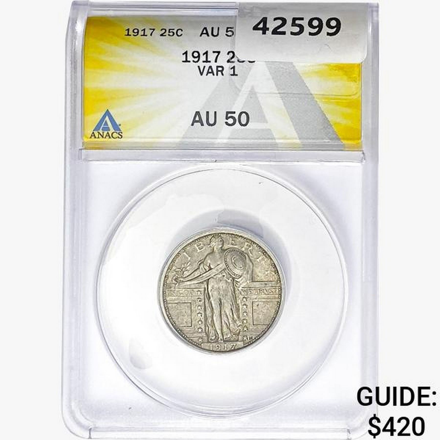 1917 TY1 Standing Liberty Quarter ANACS AU50