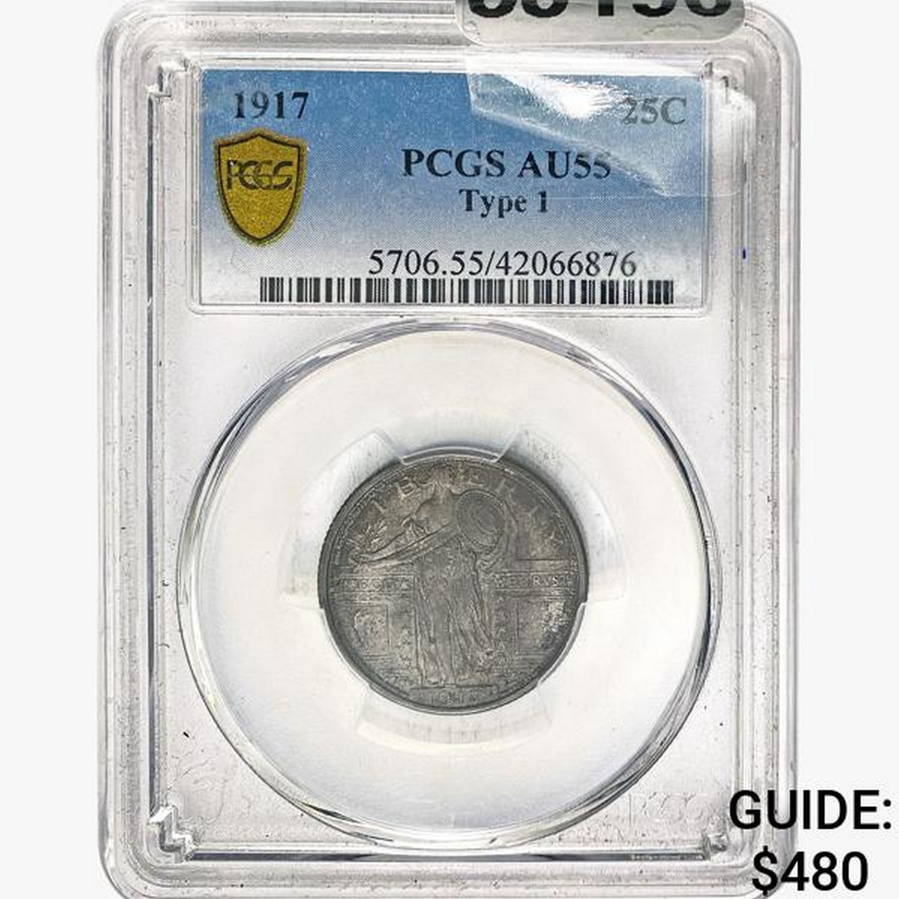 1917 TYPE 1 Standing Liberty Quarter PCGS AU55