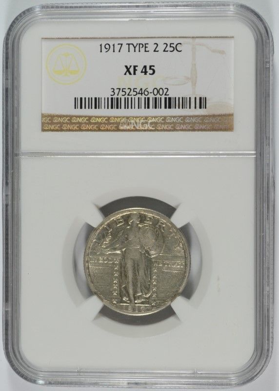1917 TYPE-2 STANDING LIBERTY QUARTER, NGC XF-45