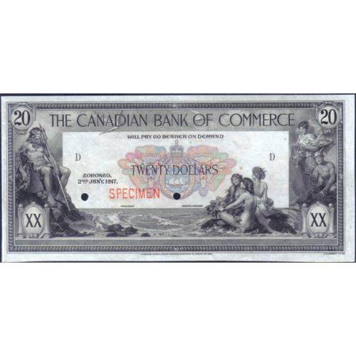 1917 Twenty Dollars Canadian Bank of Commerce Specimen, CH 75-16-02-08S Plate Position D, PMG Choice Uncirculated 64 Exceptional Paper Quality