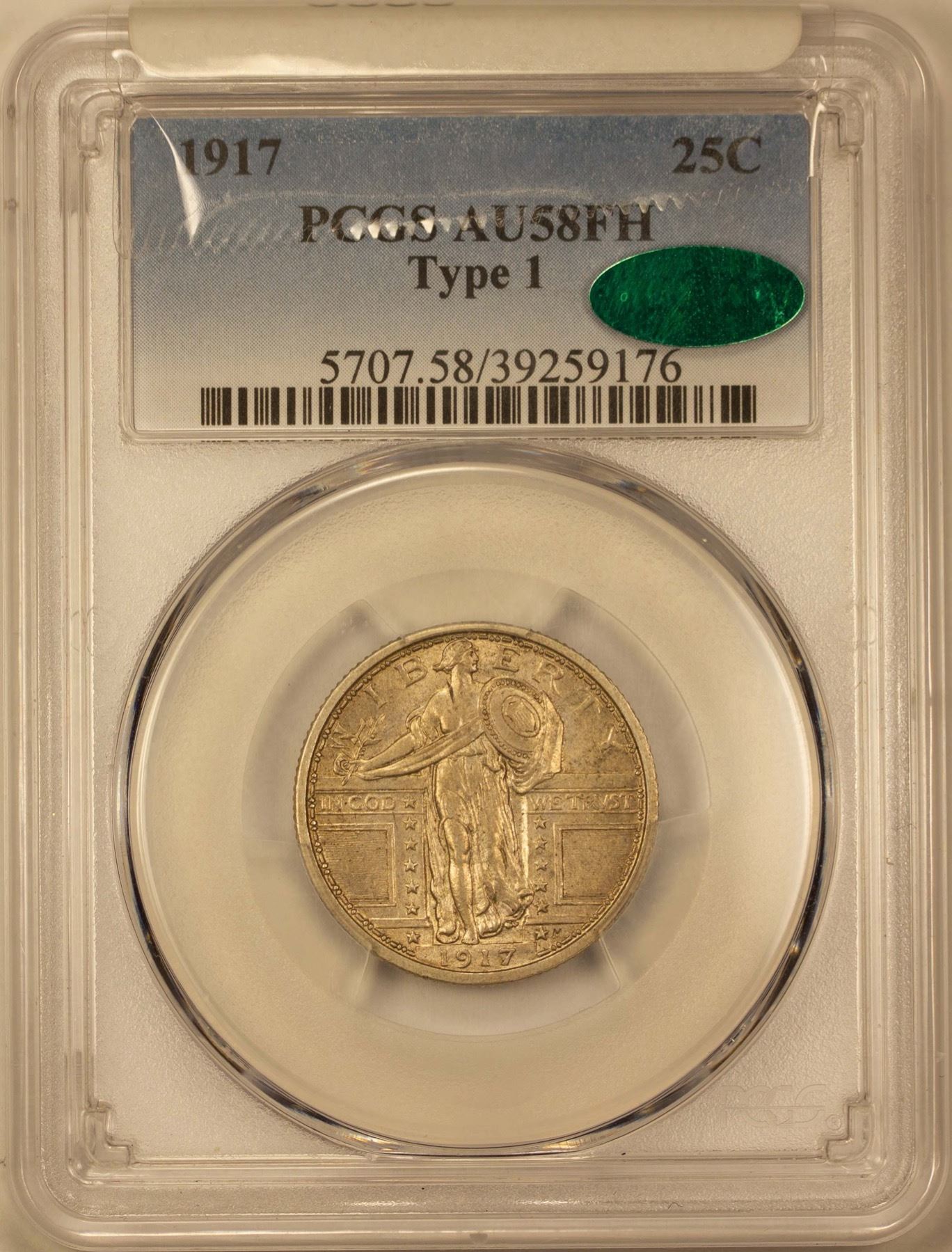 1917 Type-1 Standing Liberty Quarter 25c PCGS AU-58 FH CAC