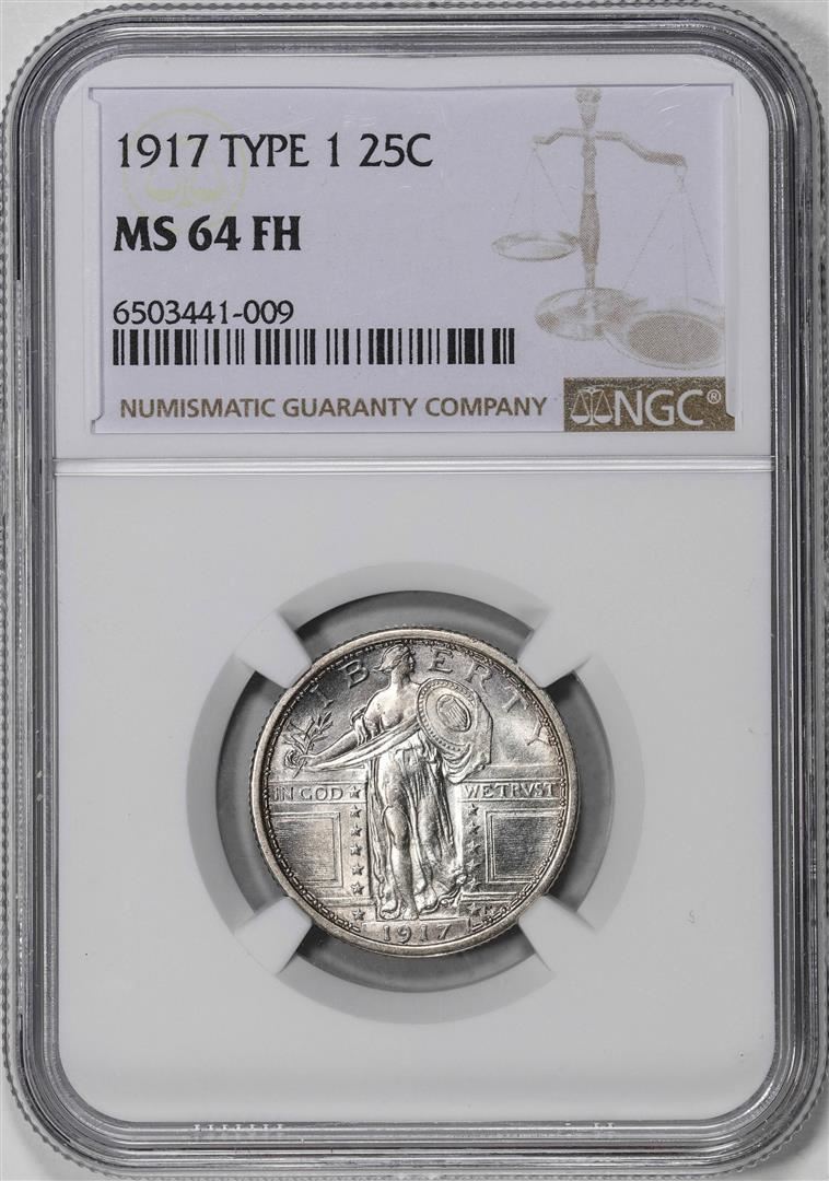 One 1917 Type 1 Standing Liberty Quarter Coin NGC MS64 FH. NGC Certified.