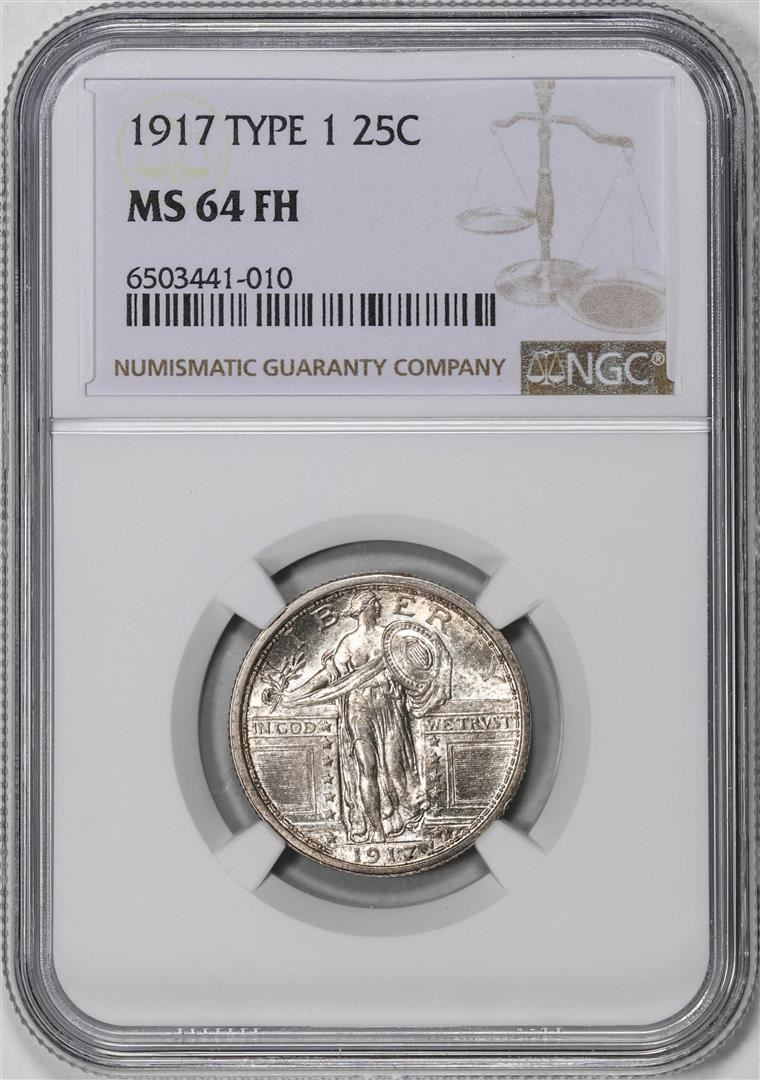 One 1917 Type 1 Standing Liberty Quarter Coin NGC MS64 FH. NGC Certified.